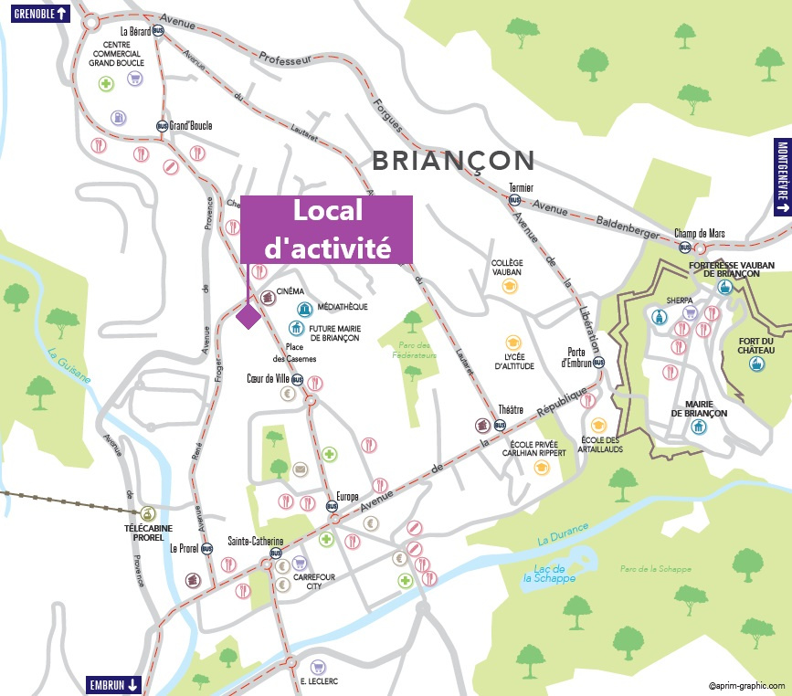 Situé au pied d'une toute nouvelle résidence de prestige au coeur de ville de Briançon où l'architecture se distingue par son design élégant et ses finitions de qualité, le local commercial que nous vous proposons est à seulement 300 mètres des remontées mécaniques du Prorel, à proximité des commerces, du marché (bihebdomadaire), de la médiathèque, du cinéma et des hôtels du centre-ville.
