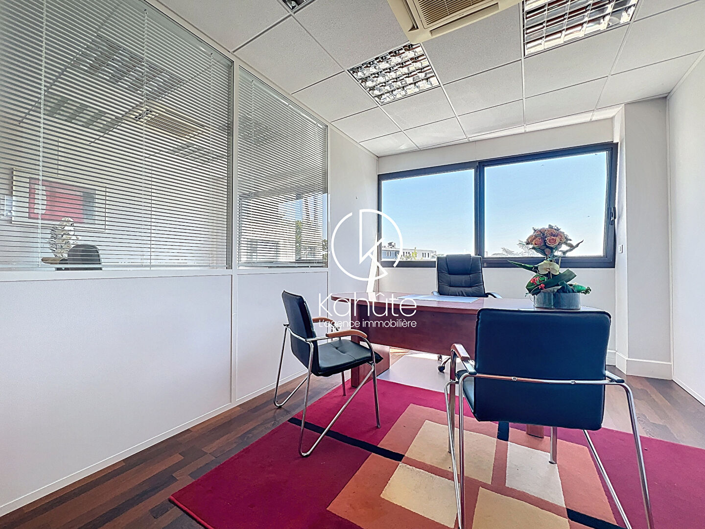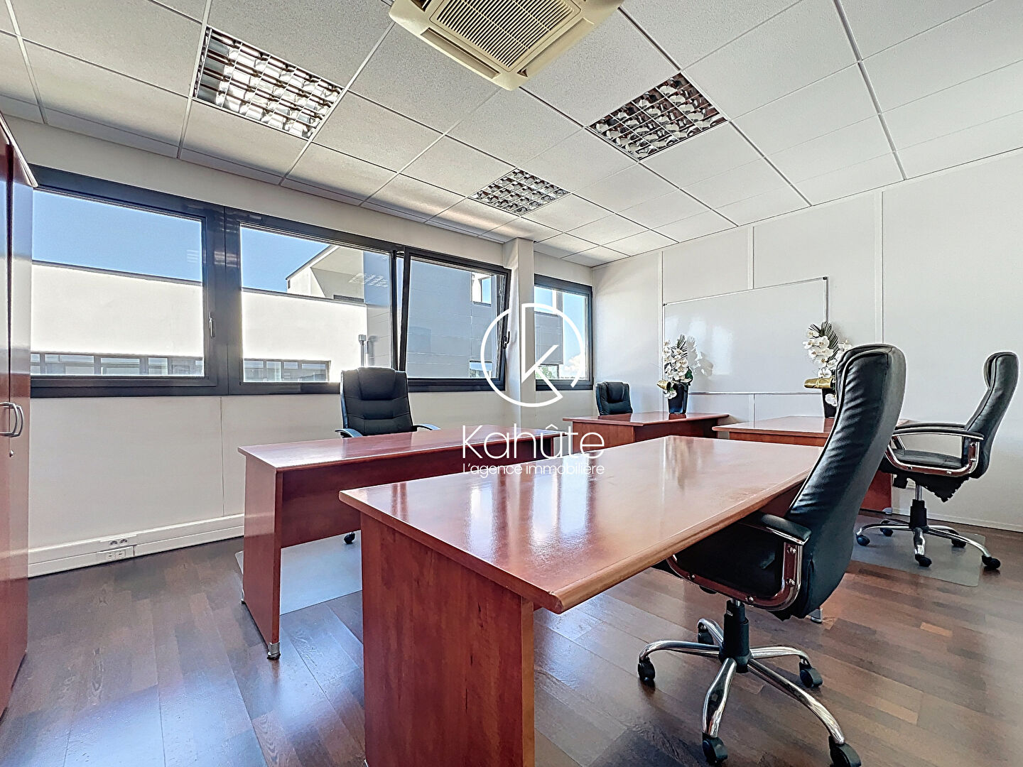 Ces bureaux offrent un cadre de travail moderne et fonctionnel, avec une climatisation réversible intégrée dans chaque pièce assurant un confort optimal tout au long de l'année.