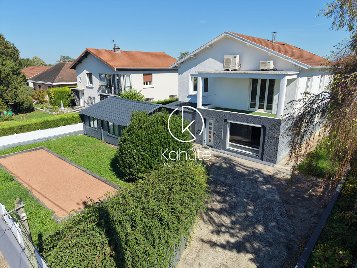 Kahûte vous propose sur la commune de Jonage, au calme, à seulement 2 minutes du centre du village donc proche de toutes les commodités, cette maison individuelle climatisée de 179m², 6 pièces, 4 chambres sur son terrain piscinable de 950m² (terrain de pétanque + piscine hors-sol).