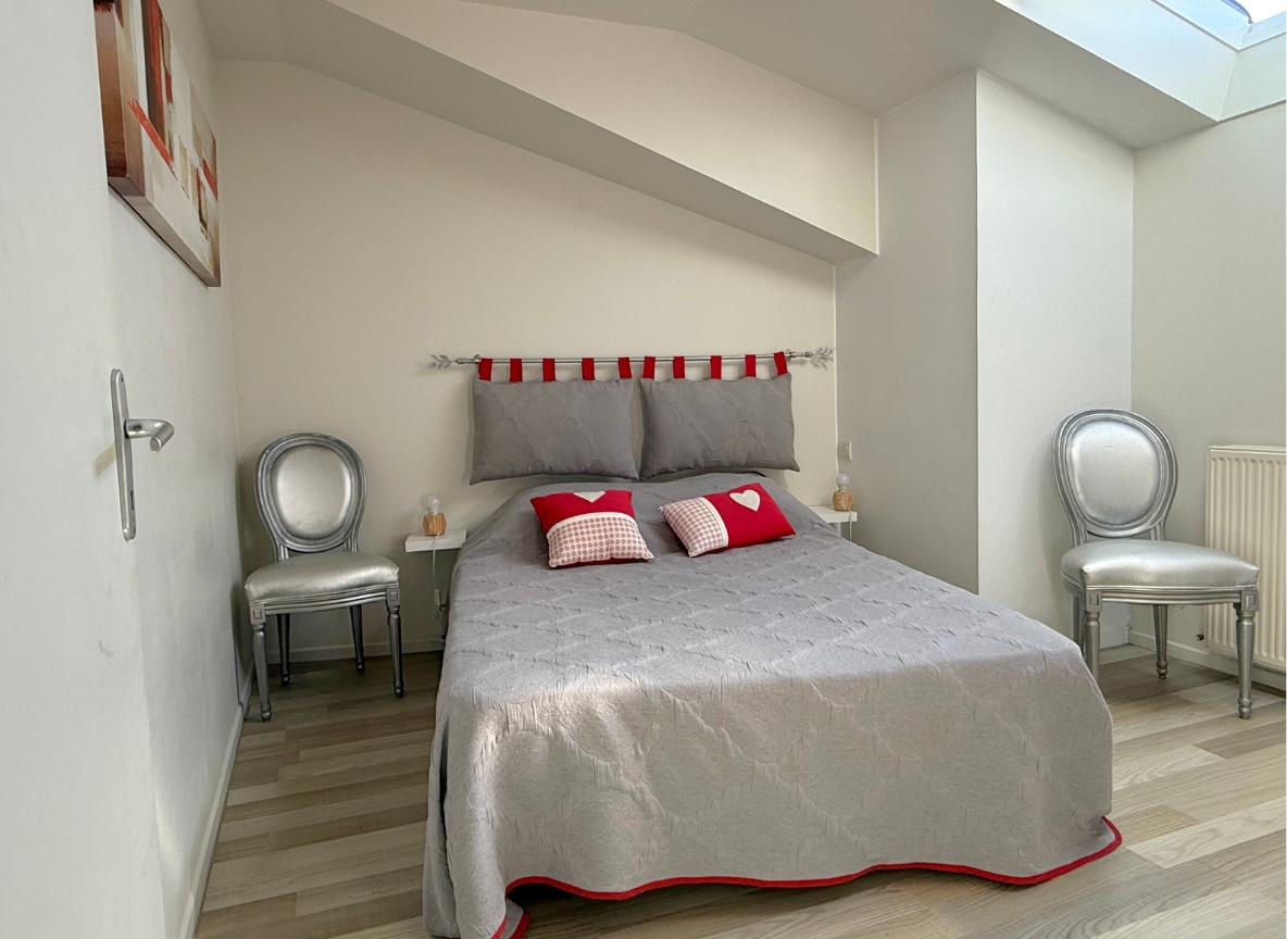 À l'étage, un palier dessert une grande chambre et une pièce supplémentaire pouvant servir de bureau, dressing ou chambre d'enfant.
