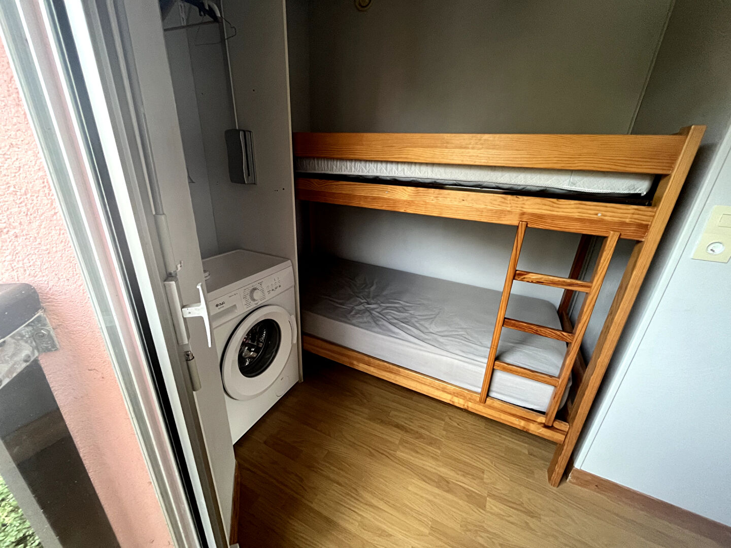 La Baule - Vieux Guézy, à seulement 10 min à pieds des plages, de la gare et des commerces de Pornichet, dans une résidence verdoyante avec piscine, au calme, dernier étage, studio avec coin cabine, séjour avec kitchenette équipée, donnant sur belle terrasse exposée ouest. Local vélo commun à disposition.