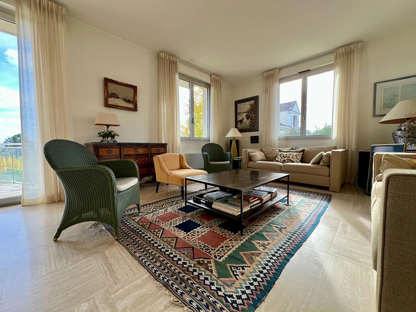 Nichée au coeur d'un quartier résidentiel très recherché du Mesnil-le-Roi, cette maison familiale de 201 m², agrandie et réaménagée en 1987, profite d'une position dominante rare offrant une vue dégagée et apaisante sur la vallée de la Seine.