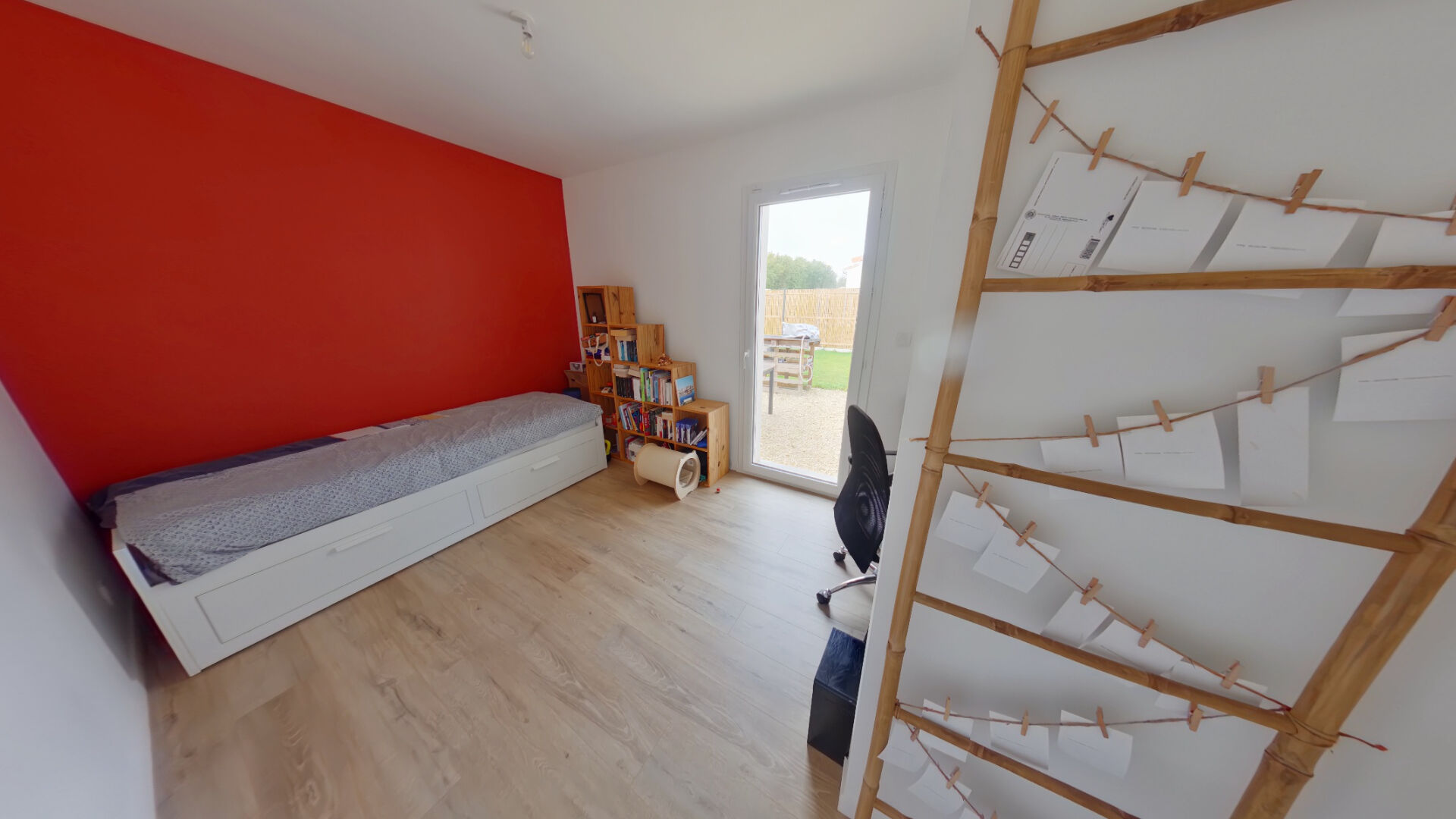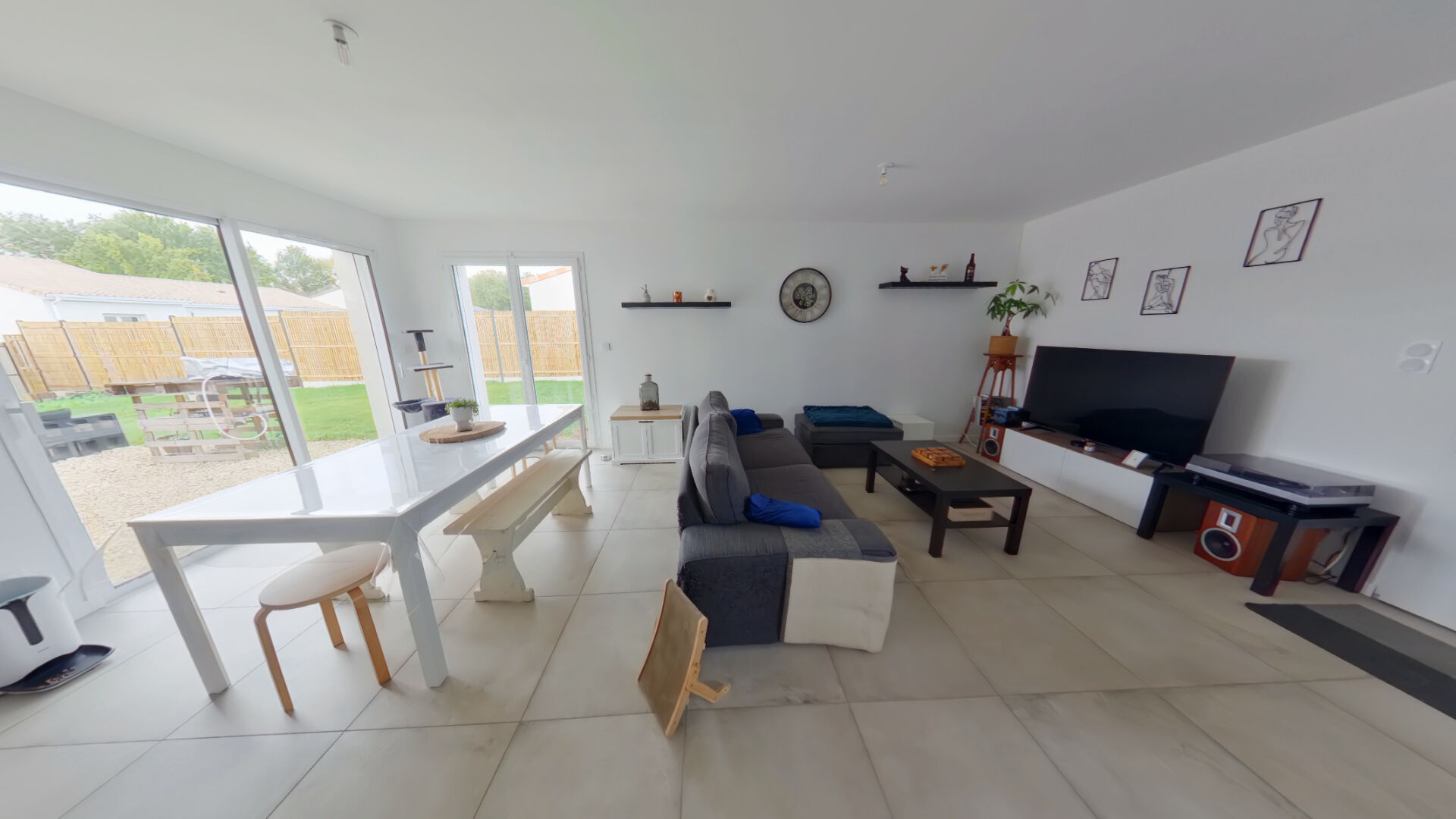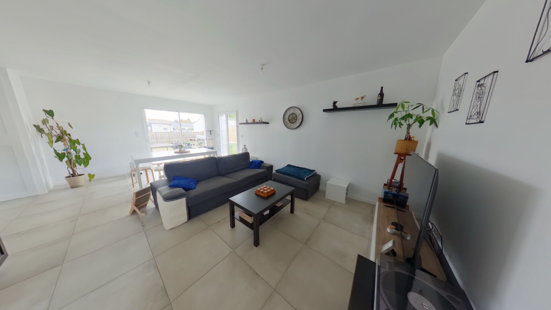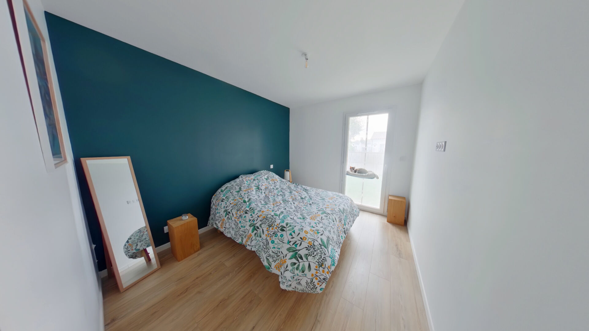 Elle se compose d'une entrée, d'une cuisine ouverte sur un salon / salle à manger, de 3 chambres, d'une salle d'eau et de WC séparés.