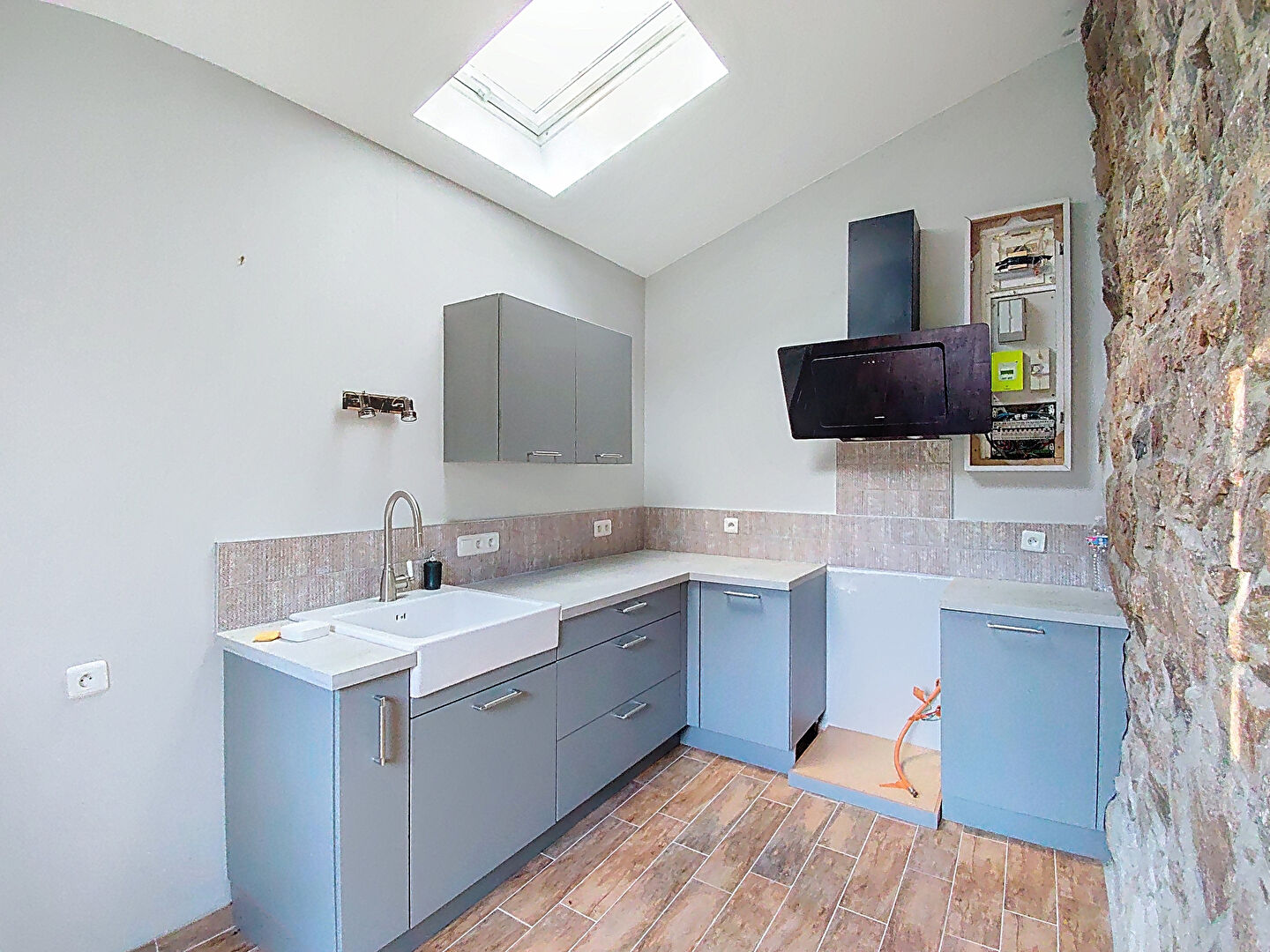 Au rez-de-chaussée, vous trouverez un salon spacieux de 30 m² équipé d'un chauffage au bois, une cuisine aménagée, un bureau ainsi qu'une salle d'eau avec WC. À l'étage, une mezzanine dessert une grande chambre confortable.