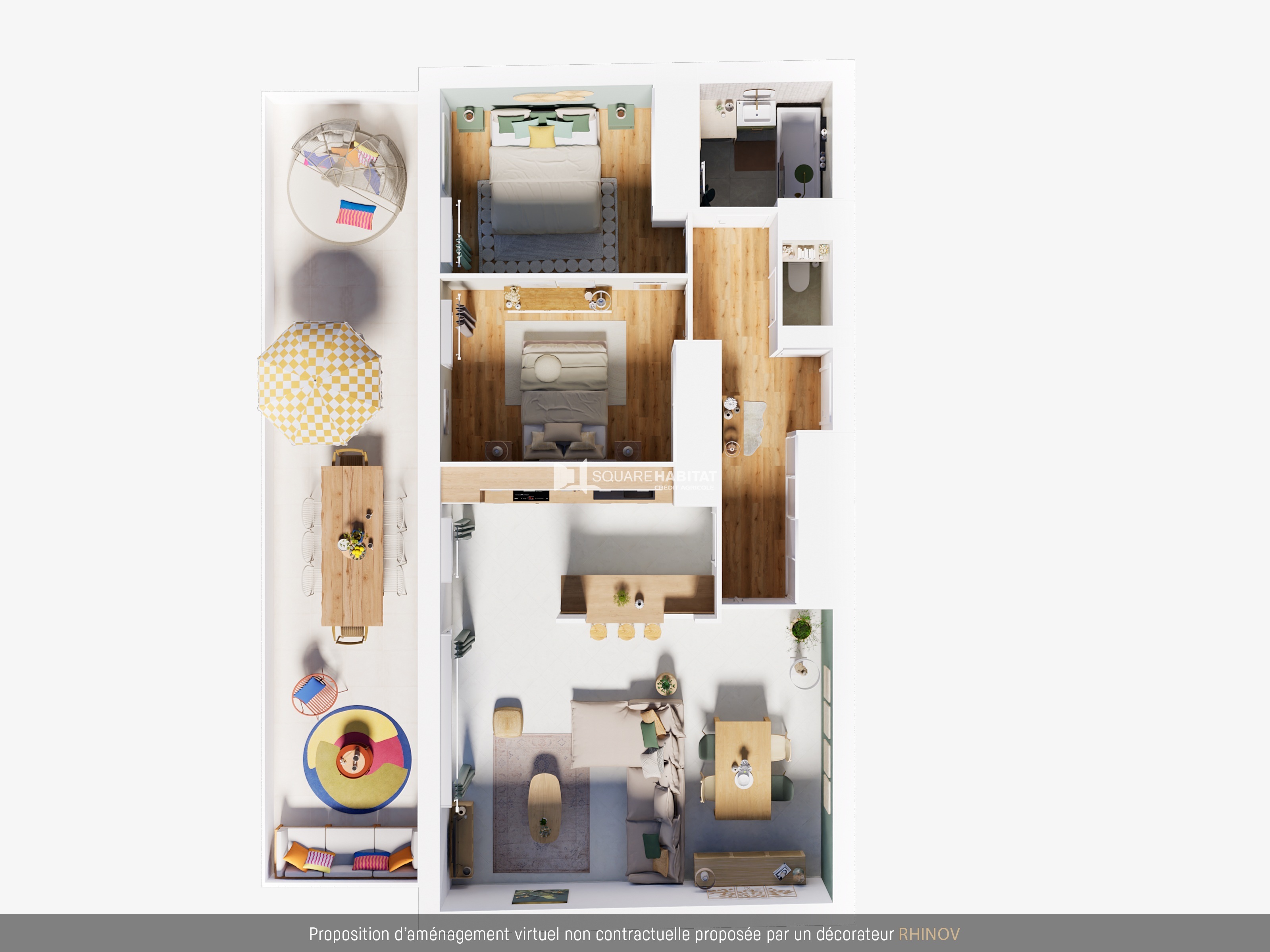 Rare par les 30 m² de balcon qui l'entoure , ses prestations de qualité ( domotique, chauffage collectif bois, gaz et solaire ) , sa belle surface de 71 m² avec une pièce de vie ouverte sur cuisine séjour, deux chambres et nombreux placards , son exposition ouest sans vis-à-vis sont de nombreux atouts pour qui cherche une vie confortable en appartement.