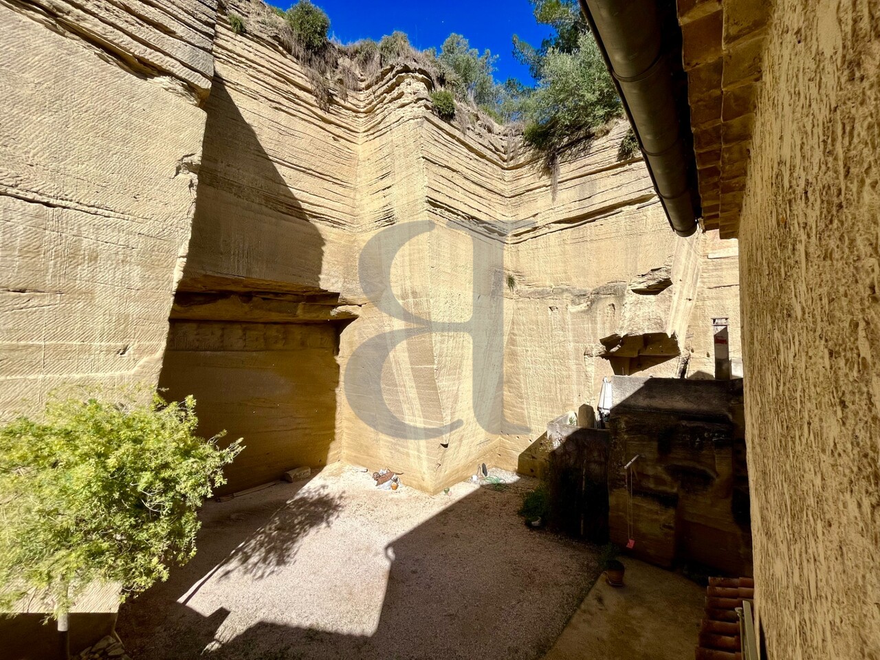 À l’arrière de la maison, une ancienne carrière de pierre, forme un décor spectaculaire et paisible. Donnant à la propriété une atmosphère unique et une beauté brute.