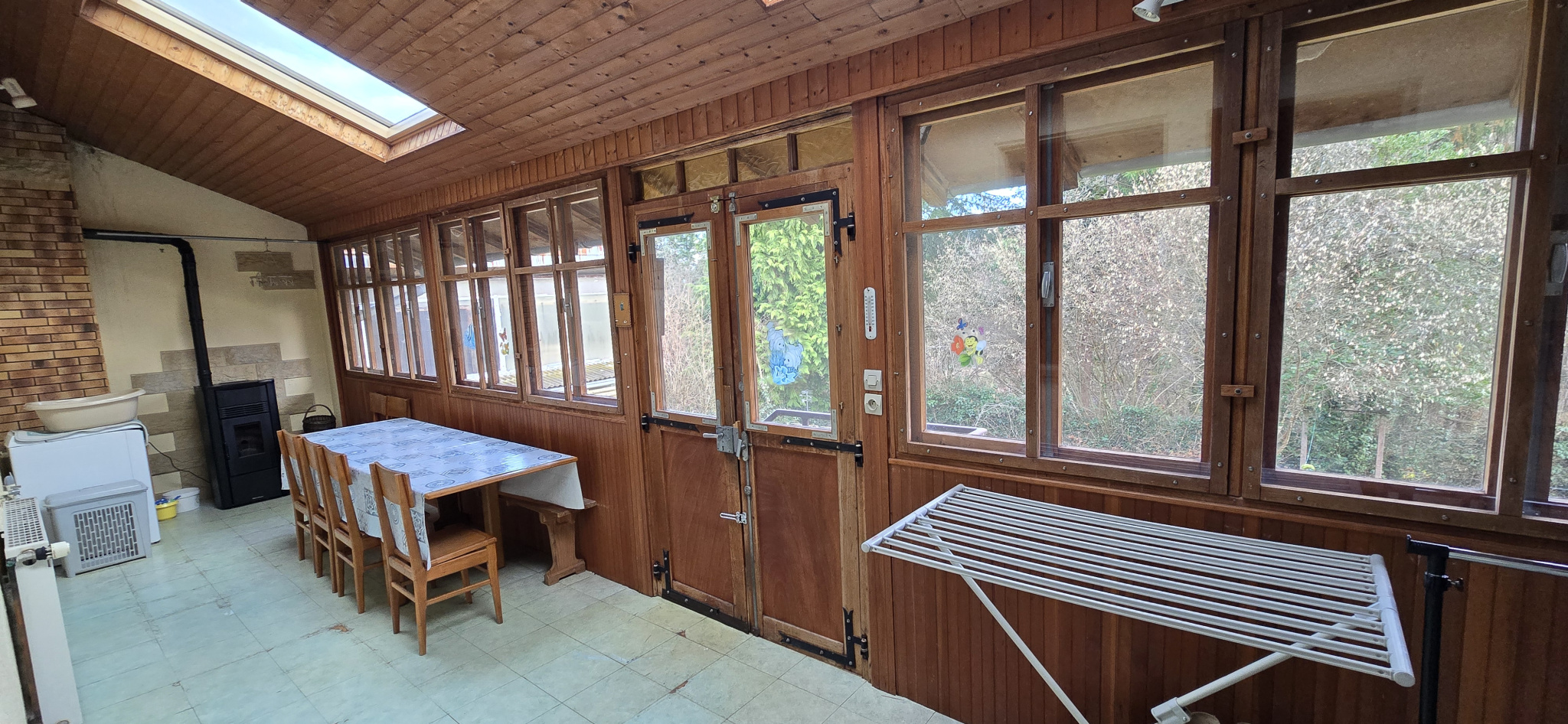 Au rez-de-chaussée, hall d'entrée, salon/séjour, cuisine séparée semi équipée, salle de bains, toilettes, 1 chambre , véranda de 19m2.