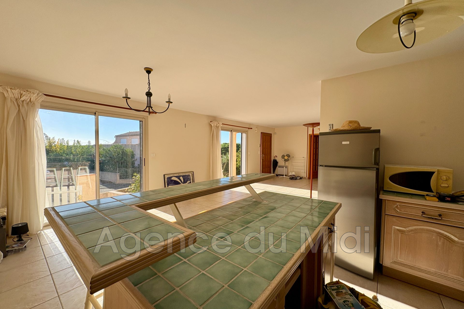Édifiée sur un terrain arboré de 470 m² avec double accès voiture, elle séduit par sa luminosité, son agencement fonctionnel et surtout sa vue imprenable sur les Pyrénées et le village de Leucate.