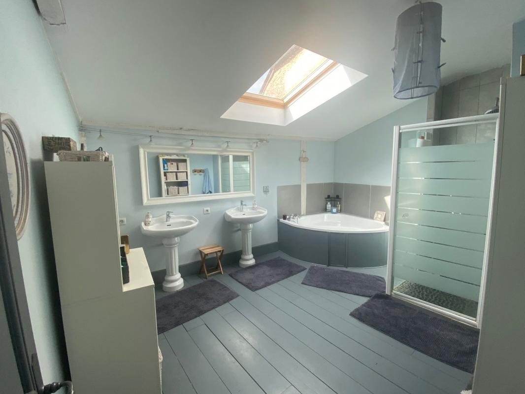 L'étage est dédié à l'espace nuit, avec une suite parentale de 36 m² dotée d'un dressing et d'une salle d'eau avec douche italienne. Trois autres grandes chambres, un dressing séparé, une salle de bain et des toilettes avec lave-mains complètent ce niveau.