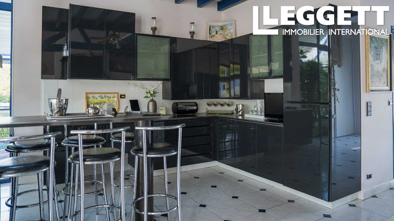 La cuisine principale, moderne et entièrement équipée, s'ouvre sur le séjour, tandis qu'une seconde cuisine fermée vient compléter l'ensemble.
