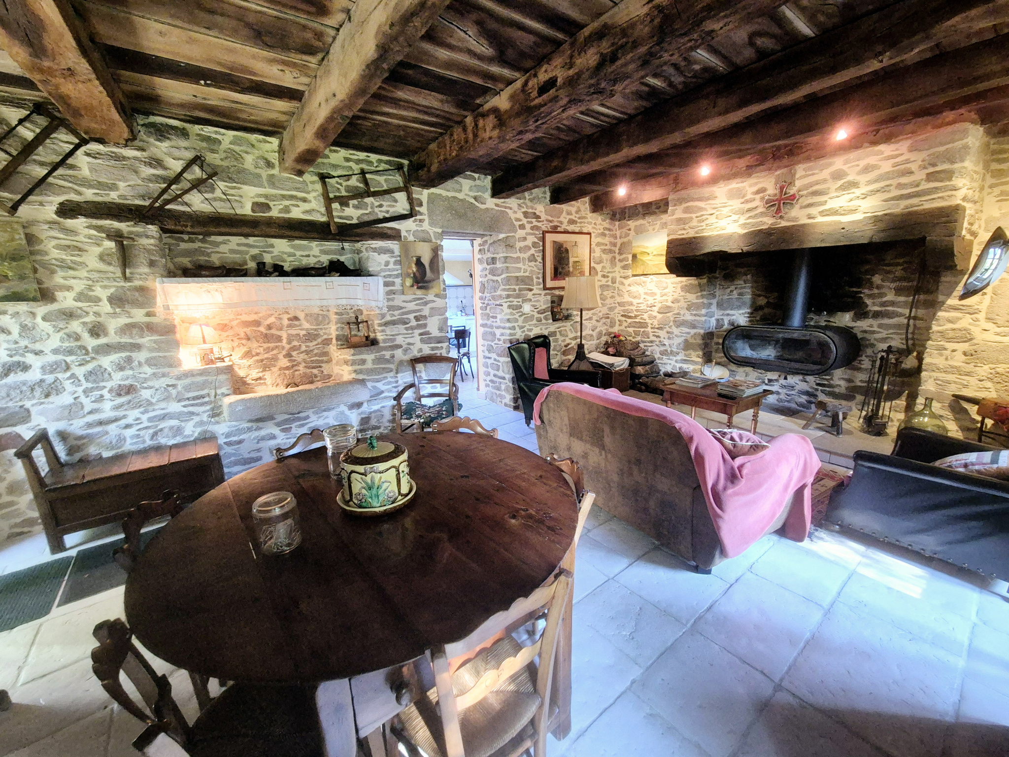 Laissez-vous séduire par son poêle à bois, promettant des soirées conviviales, et son espace cuisine/séjour lumineux et spacieux, parfait pour partager des moments en famille ou entre amis.