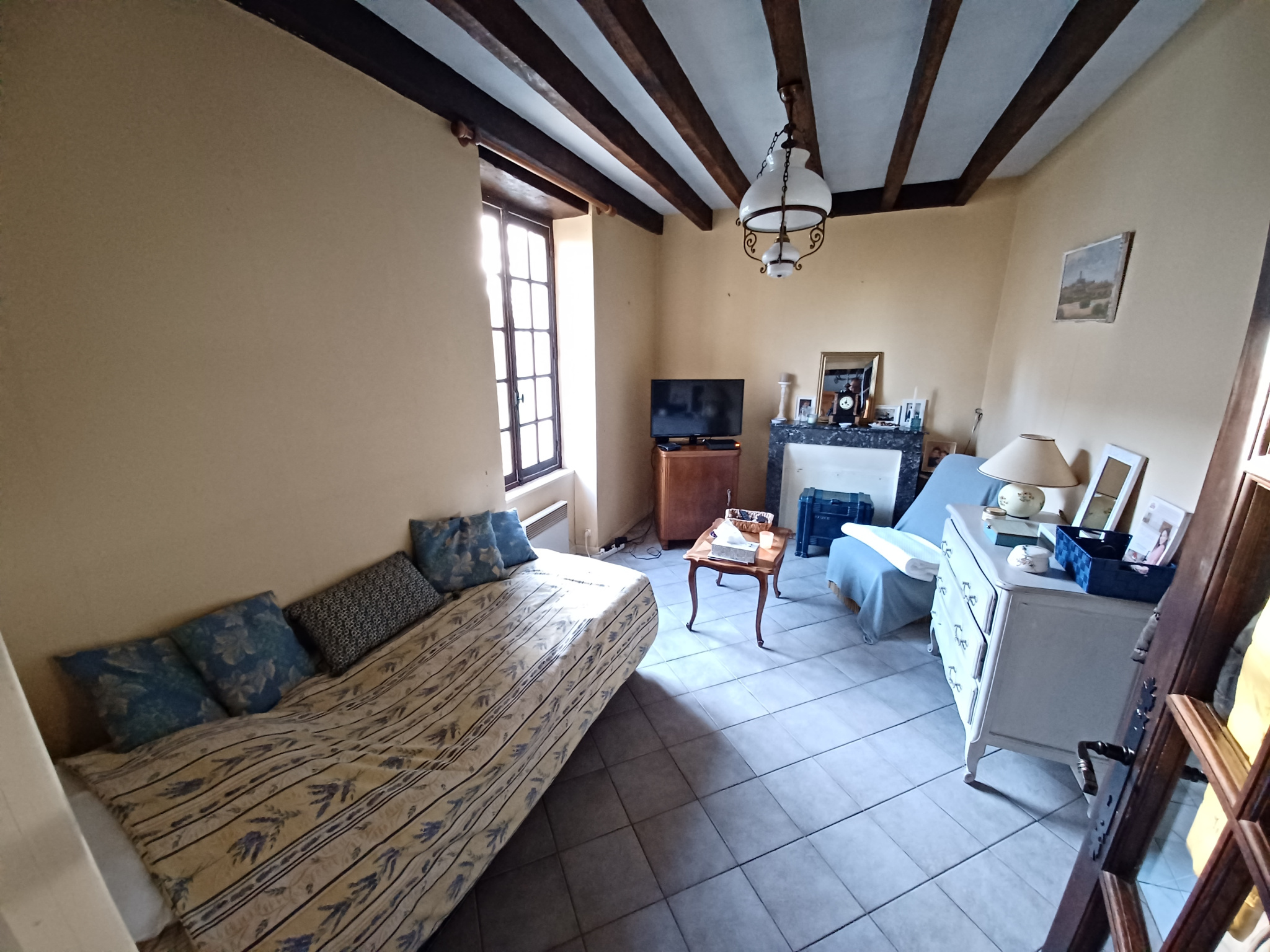 Maison ancienne de type T3, env 120m2 hab + 50m2 aménageables (réf no10 269), comprenant en rez de chaussée : Une grande pièce à vivre d'env 50m2 avec poutres apparentes, portes vitrées donnant sur jardin et cour, cuisine aménagée exposée SUD avec à la suite une chambre, salle de bain et WC.