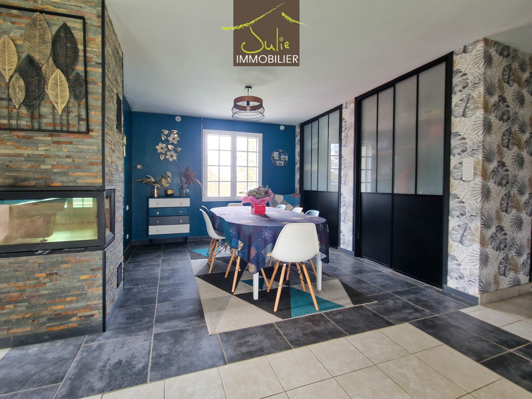 Au rez-de-chaussée, vous serez séduit par la grande pièce de vie de 47 m2 avec cheminée insert bois, une cuisine ouverte, deux chambres, un wc indépendant et une grande salle de bains avec placard