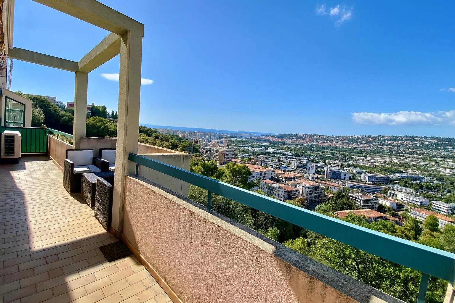 Au dernier étage d'une agréable résidence, superbe Duplex dominant la ville, avec vue mer et montagnes panoramique.