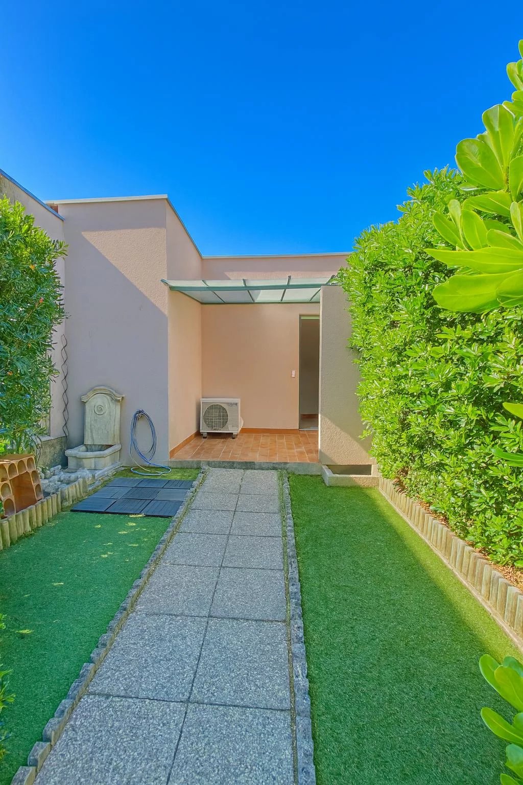 Ce bien atypique bénéficie d'un petit jardin à l'entrée, de belles prestations et d'un garage .