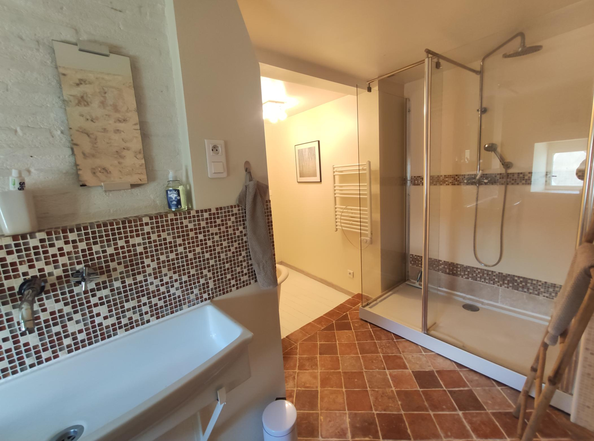 Au 1er étage : palier desservant salle de bains, dressing et deux chambres dont une avec pièce d'eau privative.