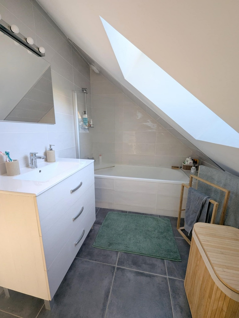 L'étage mansardé, vous proposera 2 chambres supplémentaires, un bureau, une salle de bains et un WC séparé.