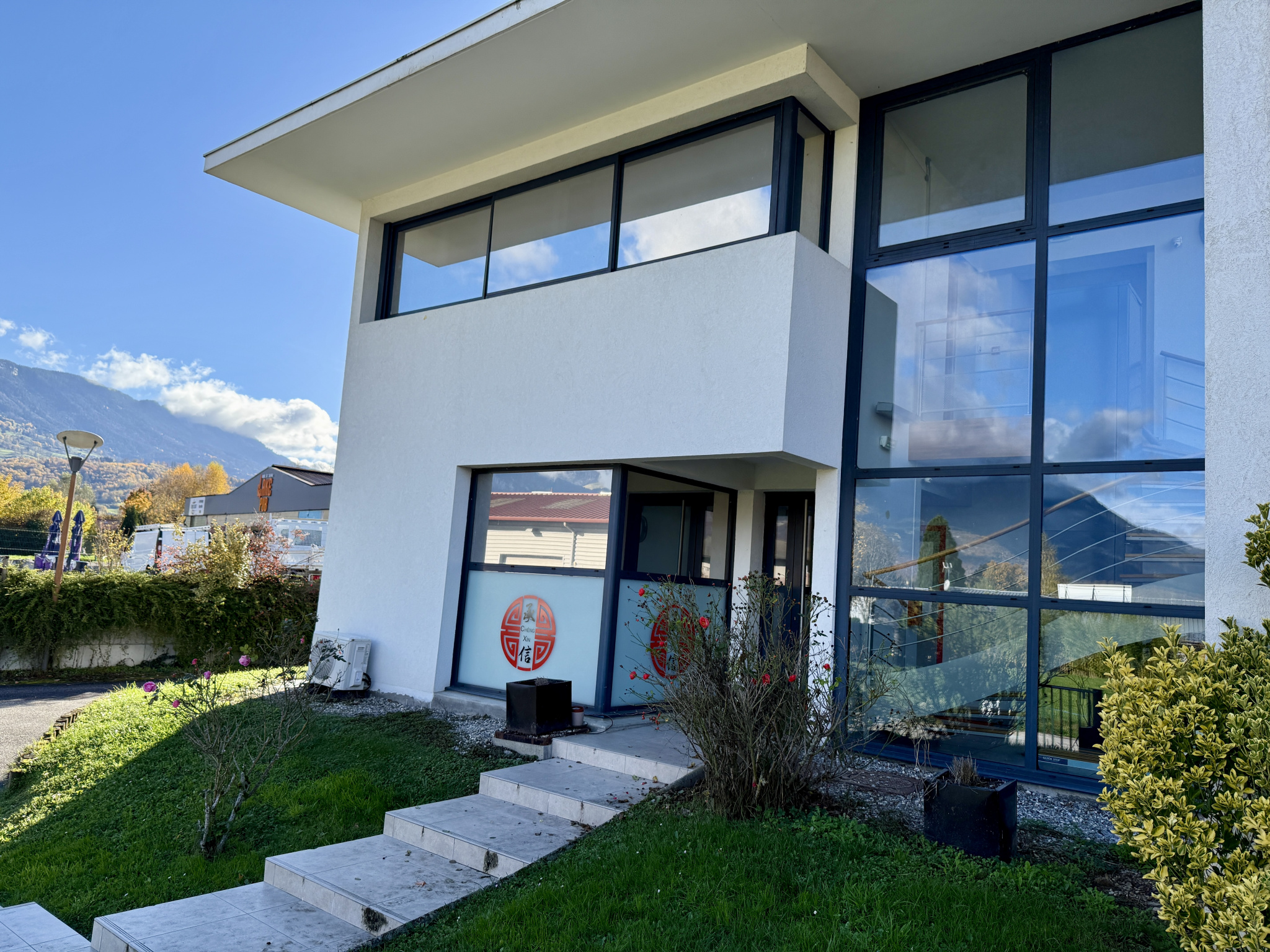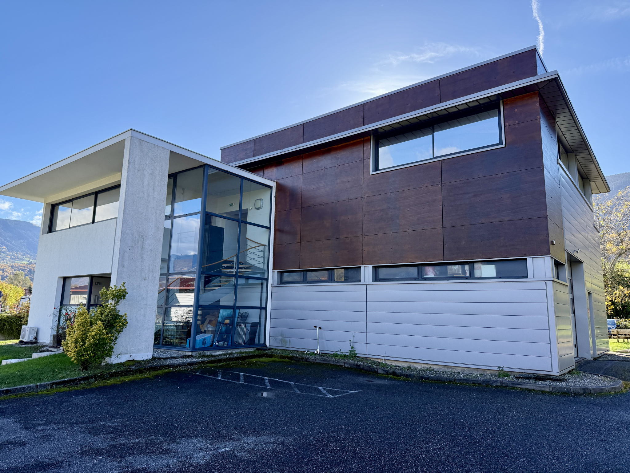 L'ensemble profite d'une exposition plein sud et d'une vue dégagée sur les montagnes, apportant luminosité, visibilité et cadre de travail agréable.