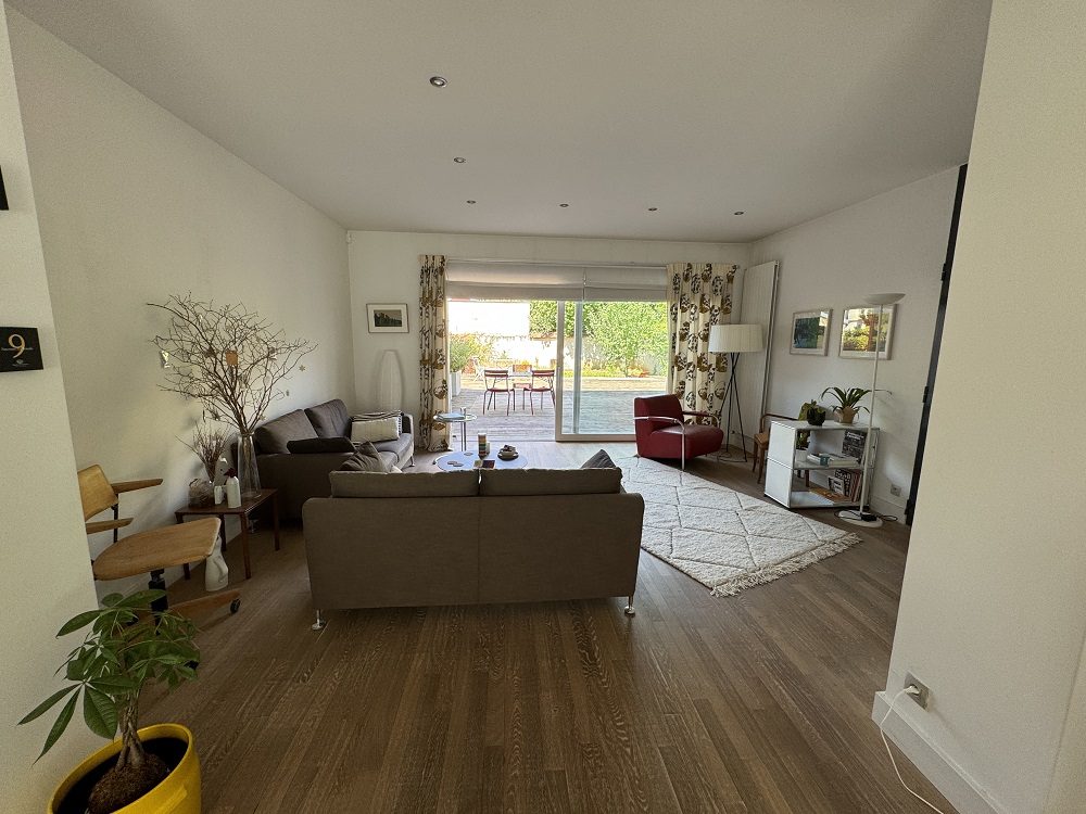 Au coeur de cette propriété, l'espace vie de 52 m² se divise entre le séjour et la salle à manger, baignant dans une lumière naturelle grâce à une belle baie vitrée donnant un accès direct sur une grande terrasse et un jardin.
