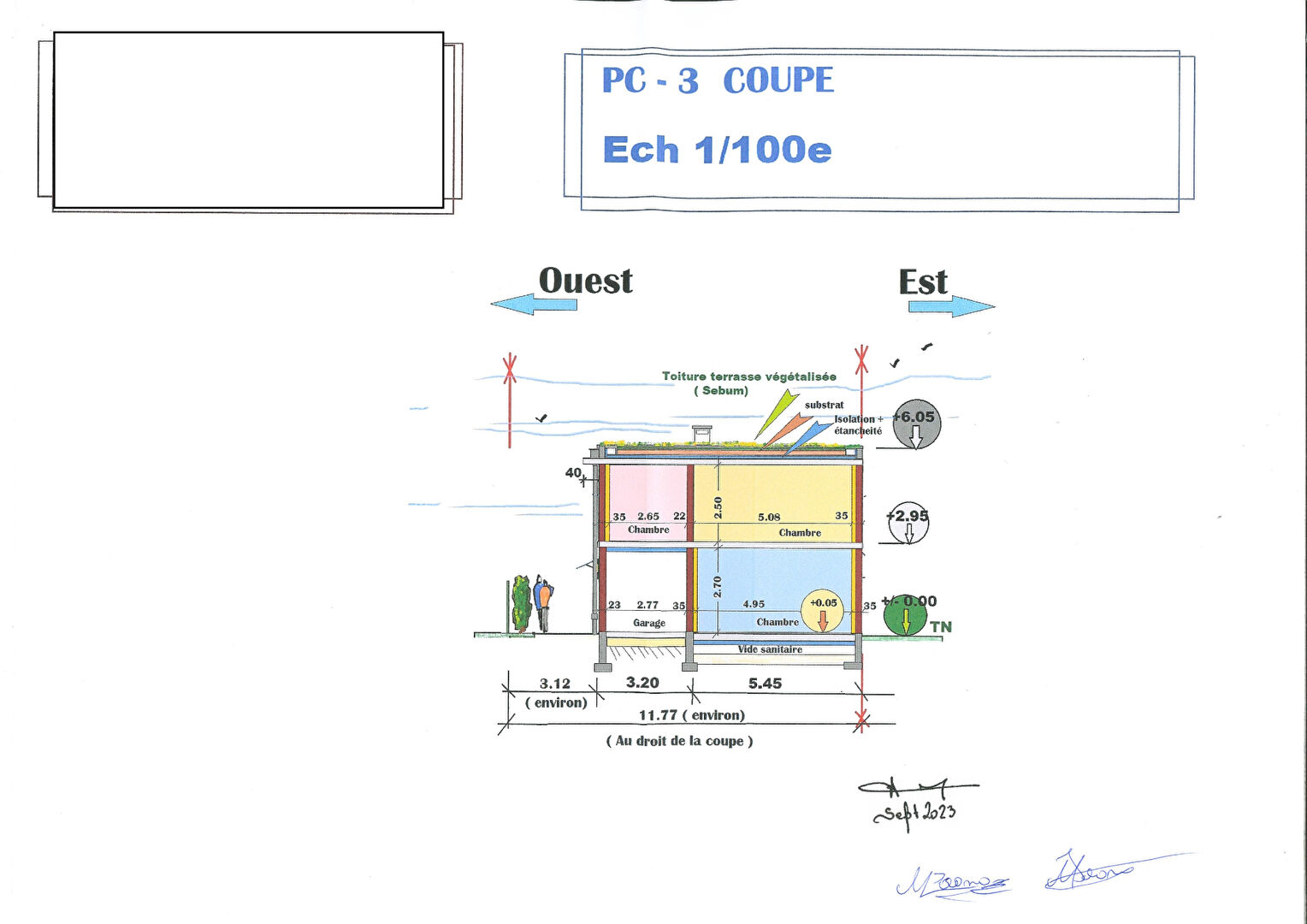 Issu d'une division, ce terrain plat et non viabilisé est d'une superficie de 405 ². Un permis de construire à été accordé pour la construction d'une maison moderne de 135 m² avec un garage !