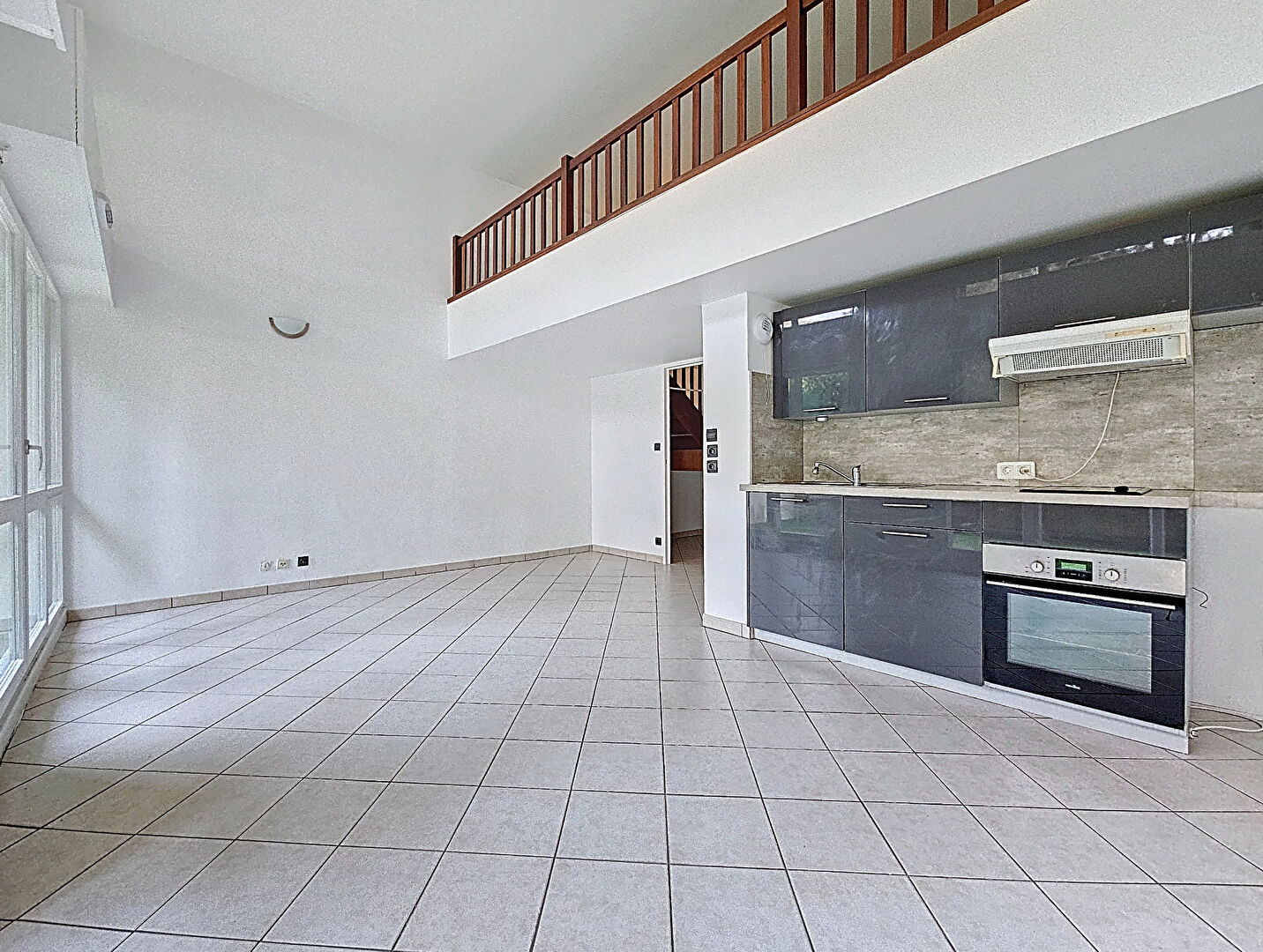 À l'étage, une chambre en mezzanine offre un espace nuit optimisé et fonctionnel.