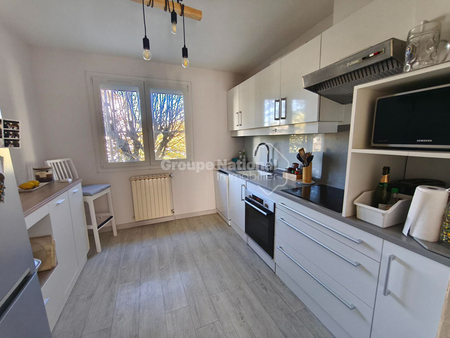 Dans résidence sécurisée par un interphone, situé au 1er étage, posez vos valises dans ce magnifique appartement 5 pièces clé en main ! Entièrement rénové, il dispose d'une cuisine aménagée et équipée, d'un lumineux et spacieux salon-séjour avec balcon (équipé d'un store), de 3 chambres dont l'une équipée d'un grand dressing et d'une salle d'eau refaite récemment avec coin buanderrie attenant. Faibles charges et chauffage individuel. Pas de frais à prévoir sur la copropriété. Une cave et un garage avec porte auto viendront poser la cerise sur le gâteau ! Proche bus, écoles maternelles et primaires, collège et commerces.