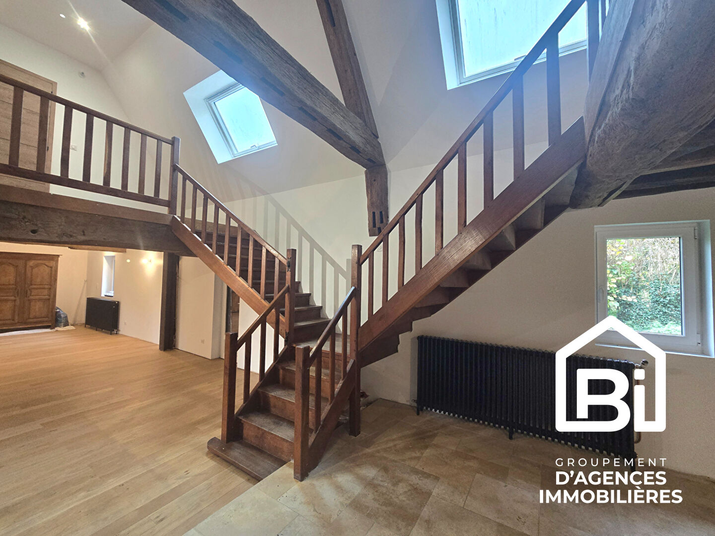 - un vaste séjour lumineux avec poutres,