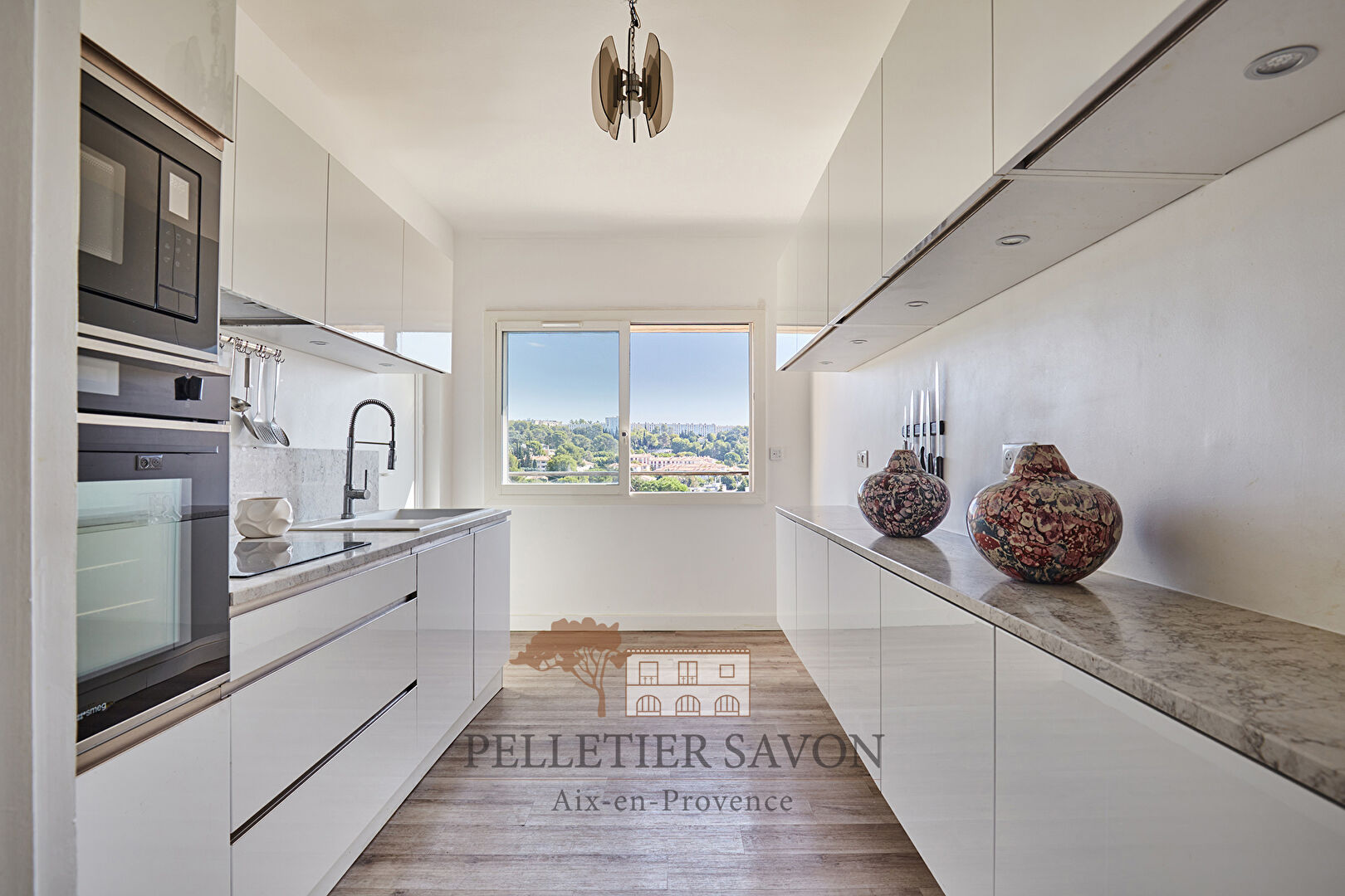 Situé en étage élevé et desservi par un ascenseur, ce bien rare bénéficie d'une vue panoramique imprenable sur la ville. Sa triple exposition inonde les pièces de lumière naturelle, créant une atmosphère chaleureuse et accueillante en toutes saisons. Entièrement rénové avec des matériaux de qualité, l'appartement conjugue modernité et confort avec une vaste pièce de vie d'environ 40m2, prolongée de sa terrasse plein ouest. La cuisine indépendante, entièrement équipée et meublée est complétée d'une loggia et s'intègre harmonieusement à l'ensemble.