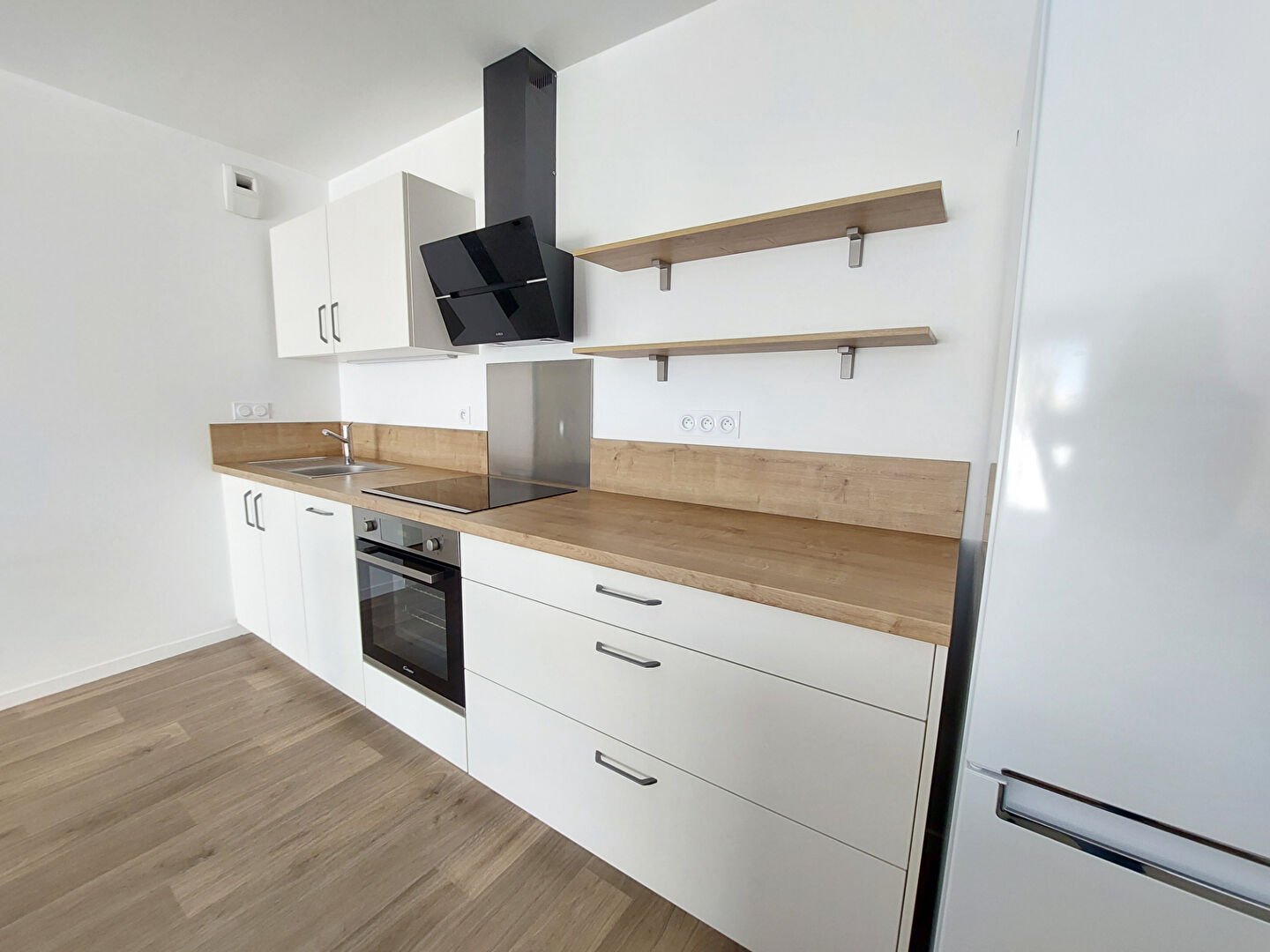 Lumineux et parfaitement agencé, il se compose d'une entrée avec placard, d'un salon/séjour avec cuisine aménagée et équipée ( meubles, four, plaques, hotte, frigo, lave-vaisselle et ilot), 2 chambres avec placards, ainsi que d'une salle de bains et un WC indépendant.