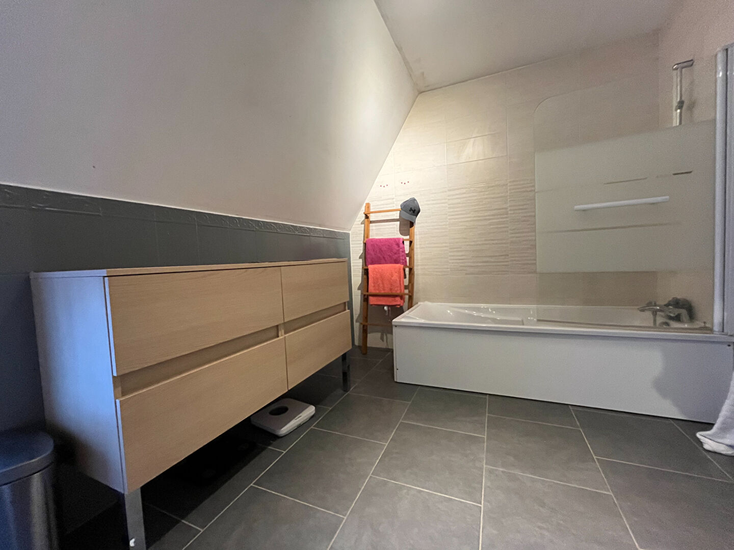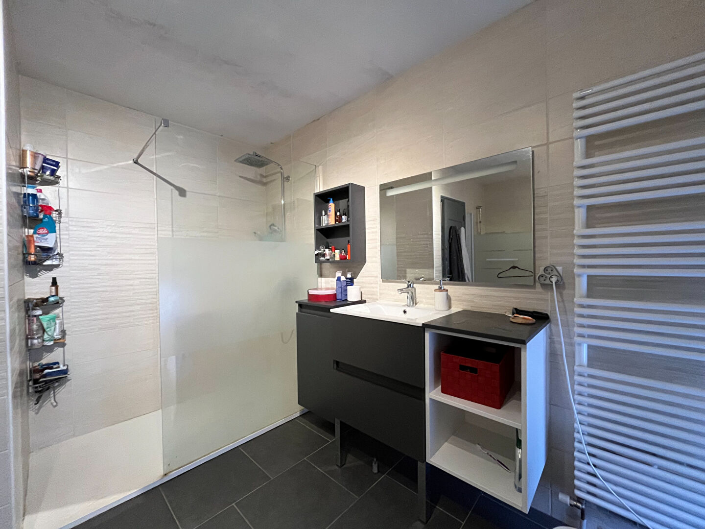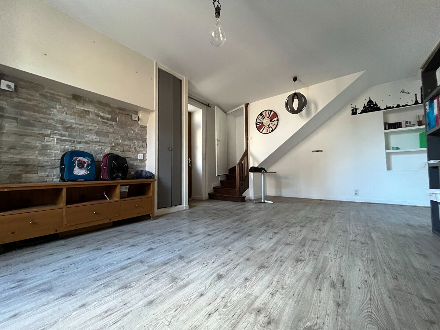 Au 1er étage : une entrée indépendante sur salon, une chambre, un dressing, une salle de bain avec douche et un WC.