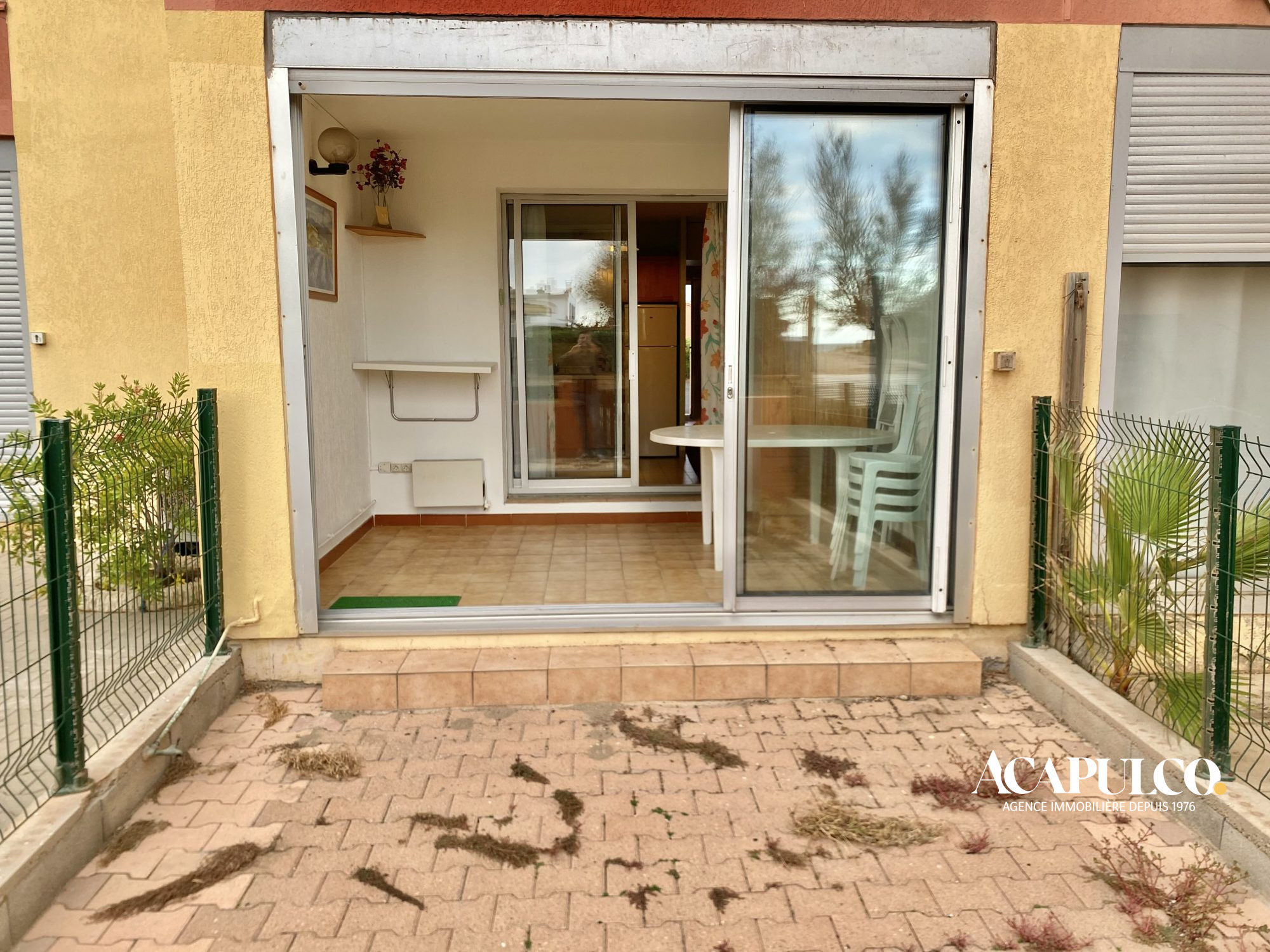 VALRAS PLAGE : Appartement de type deux pièces avec loggia vitrée et jardinet comprenant une cuisine équipée, un séjour, une chambre, salle d'eau avec douche et WC séparé.