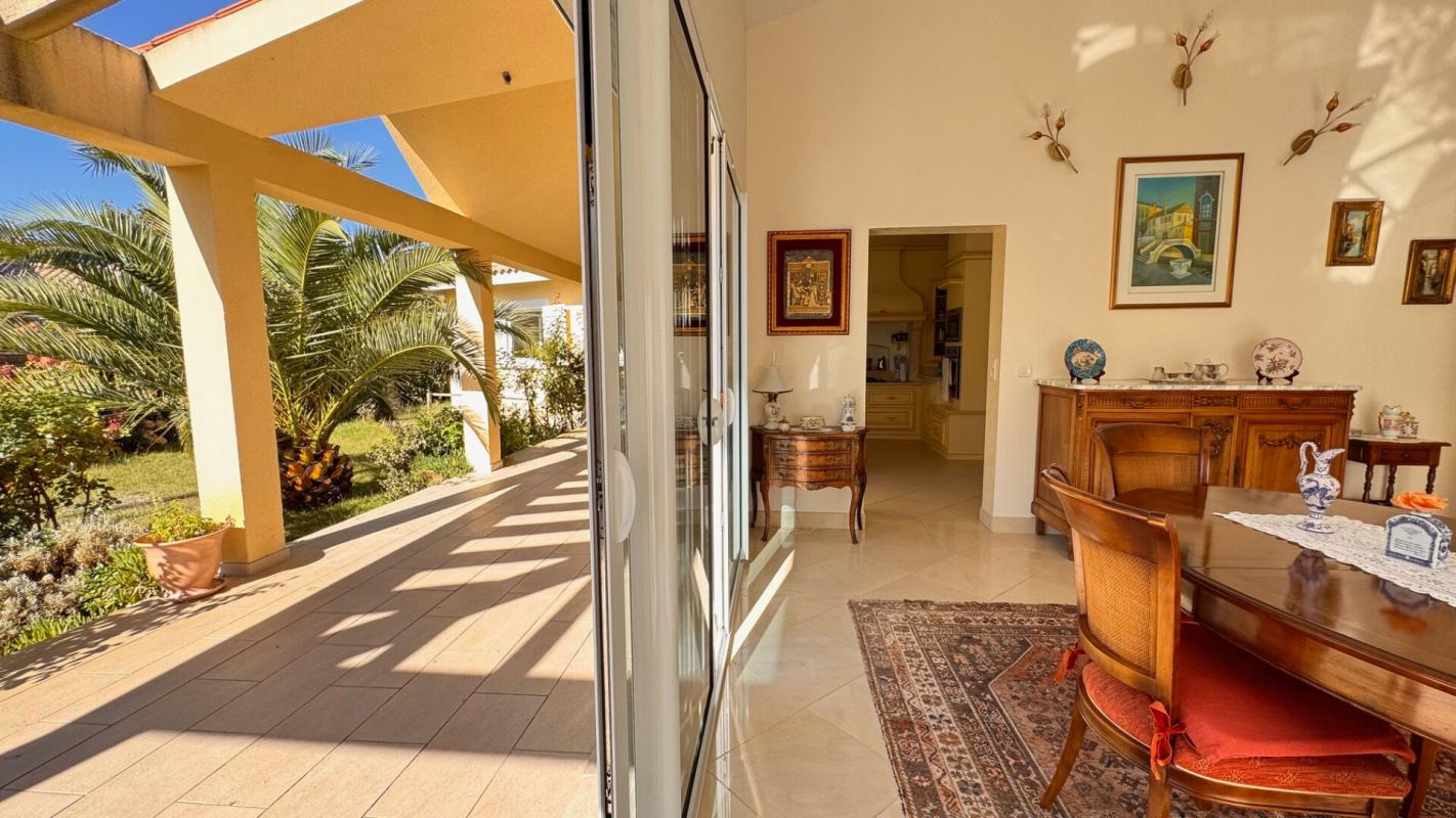 GRANDE VILLA FAMILIALE en excellent état, parfaitement soignée, elle présente une vraie entrée avec vestiaire, une belle pièce de vie lumineuse avec larges baies vitrées, une cuisine aménagée et équipée séparée qui ouvre aussi sur la grande terrasse en partie couverte. L'espace nuit du rdc comprend une chambre avec salle d'eau privée, deux autres chambres, grande salle d'eau, un dressing, une pièce (bureau, 4è chambre ou autre), une cave à vin. A l'étage deux autres chambres, une salle d'eau-wc. Une annexe avec atelier et une pièce isolée et chauffée et sa baie vitrée (idéale pour profession à domicile). Un vaste parking en beaux pavés de ville en quartz qui peut accueillir plusieurs véhicules. Un jardin joliment paysagé. Cette villa impeccable, très soignée, s'adresse à une famille qui recherche de beaux volumes, au calme, dans un environnement paisible et résidentiel, proche des groupes scolaires. A visiter sans tarder !