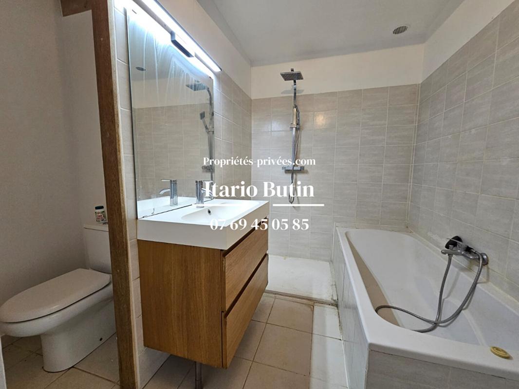 La salle d'eau a été entièrement rafraîchie et se compose d'une baignoire, d'un WC et d'une douche, offrant tout le confort nécessaire.