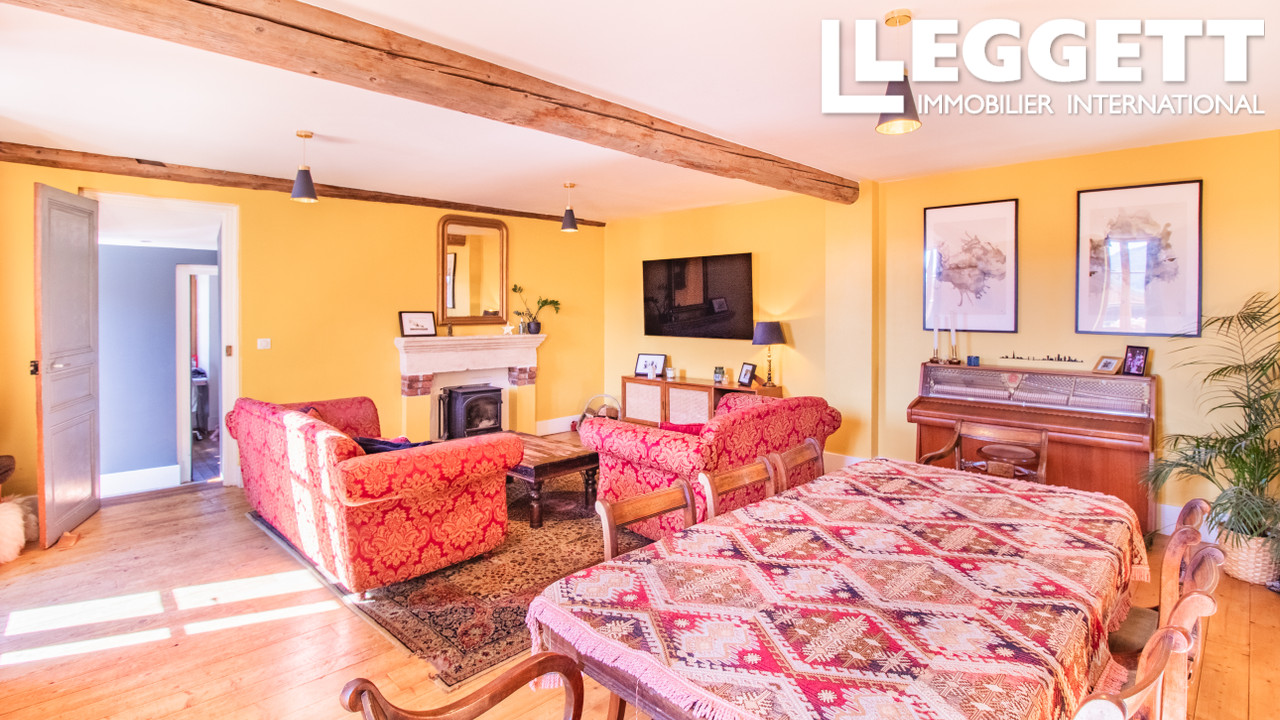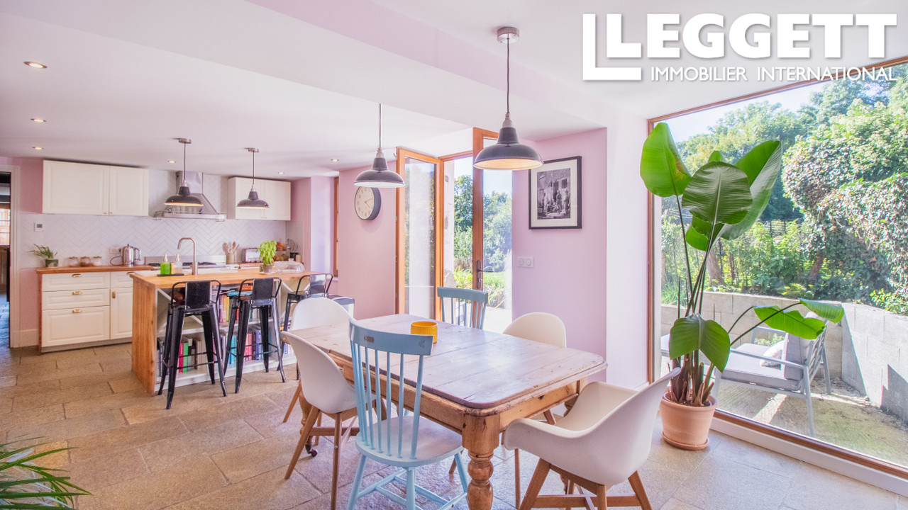 Maison principale de 200 m² : vaste salon-séjour avec poêle à bois, cuisine conviviale et spacieuse ouverte sur terrasse et jardin sud-ouest, une bureau très lumineux avec poêle à bois, 4 chambres dont une suite parentale, espace invités avec 2 chambres en suite.