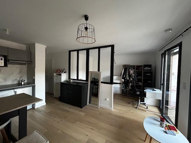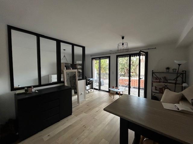 L'appartement se compose d'une belle pièce de vie lumineuse, d'un coin nuit séparé par une verrière offrant plus d'intimité, d'une cuisine aménagée, fonctionnelle et entièrement équipée, ainsi que d'une salle de bain avec WC. Les prestations sont de qualité avec parquet au sol dans un environnement calme et sécurisé.