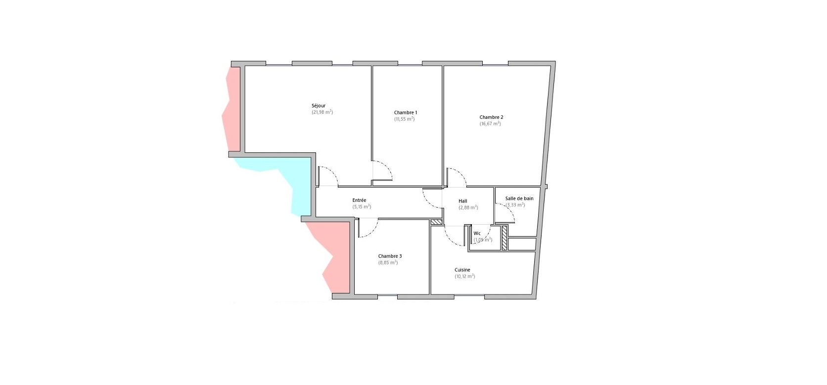 Beauvallon, dans le centre ville, situé dans un petit immeuble au 2 ème étage un appartement type 4 de 81 m2 habitables vendu loué. Il comprend une entrée, un séjour, une cuisine séparée, trois chambres, une salle de bains et un wc séparé. Chauffage individuel électrique. Menuiseries double vitrage. Loyer actuel de 509 EUR hors charges.