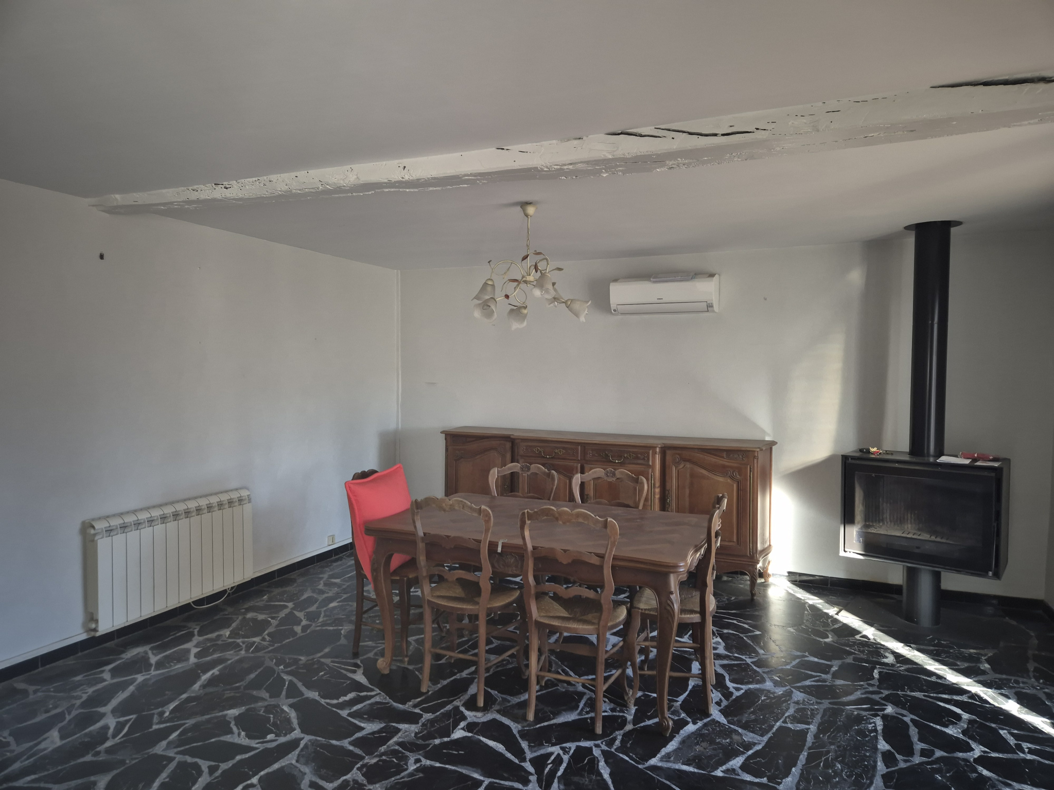 Ancienne maison béarnaise mitoyenne de 130 m2 au calme avec vue sur les champs. Close par un portail électrique, cette maison comprend au rez de chaussée, une entrée sur salon donnant sur petite véranda avec climatisation réversible et un poêle à bois de modèle Bécafire - Bécatrans, une cuisine récente équipée et un WC ind. A l'étage, quatre chambres et une salle d'eau avec WC. Un jardin avec deux abris bois et un garage avec porte électrique complètent cet ensemble à potentiel.