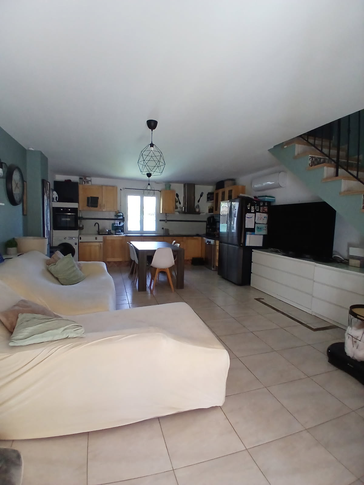 Sur la commune de Pertuis, appartement en duplex T3 de 63m2 au sein d'une copropriété fermée et sécurisée, elle se compose au rdc d'une terrasse fermée avec une entrée sur le salon / salle à manger avec cuisine ouverte équipée. A l'étage, 2 chambre dont une avec grande terrasse fermée, une salle de bain avec WC. Le tout sur un terrain de 132m2 avec piscine semi enterré et arrossage automatique