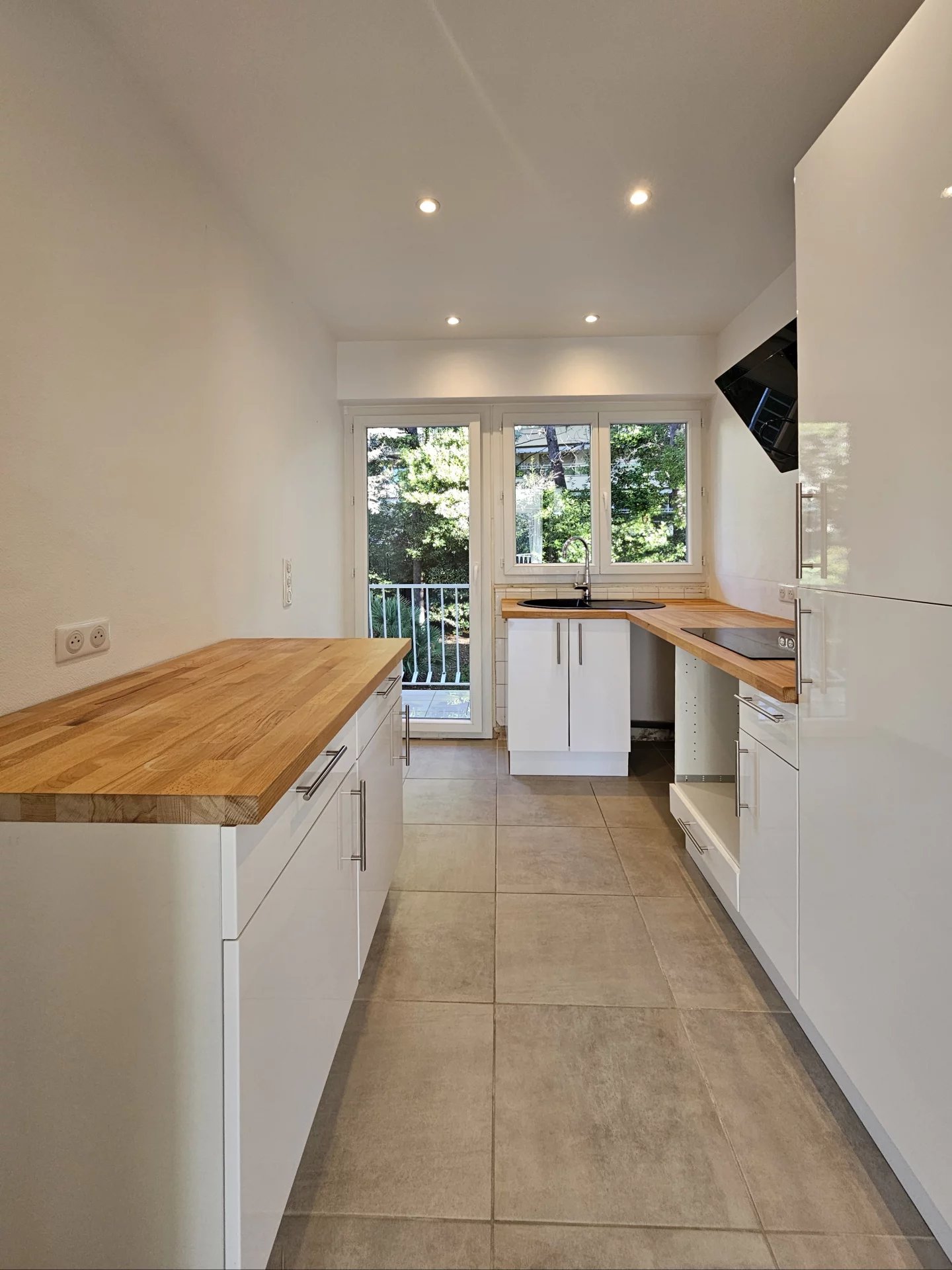 L'appartement comprend une entrée, un séjour lumineux avec terrasse sans vis-à-vis, une cuisine fonctionnelle, deux chambres, une salle de bains et des WC séparés.