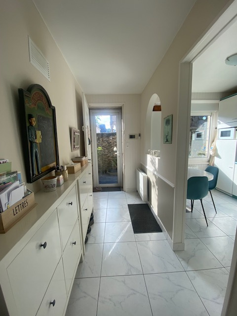 En exclusivité, très belle maison à vendre à ROHAN (56580) à proximité des commerces, du collège et du pôle médical, composée : cave carrelée en sous-sol (24 m2) avec accès direct au jardin ; au rez-de-chaussée : Hall d'entrée carrelé (4,09 m2), cuisine carrelée aménagée et équipée (8 m2) ; séjour/salon sur parquet avec cheminée insert (27,52 m2), dégagement carrelé (3,76 m2), buanderie/dressing/réserve carrelé (3,51 m2), wc suspendu carrelé avec lave-mains (1,12 m2) ; au 1er étage : palier carrelé (3,56 m2), une chambre sur parquet avec dressing (10,51 m2), deux chambres dont une en enfilade sur parquet avec placards, dont une avec cheminée (13,59 m2 et 12,54 m2), une salle d'eau carrelée et faïencée avec douche à l'italienne , meuble vasques (4 m2), wc carrelé (1,06 m2) ; au 2ème étage : palier (1,22 m2), une chambre sur parquet mansardée (9,12 m2), une grande chambre sur parquet mansardée (19 m2), grenier (3 m2) ; Terrasse avec store banne ; Deux abris de jardin. Terrain attenant clos et paysager, l'ensemble sur 274 m2. Prestations : tout à l'égout, ouvertures double vitrage avec volets roulants électrique programmable, intérieur et extérieur impeccable, très belle hauteur sous plafond, très bonne isolation, store banne électrique, radiateur électrique programmable, insert scandinave.