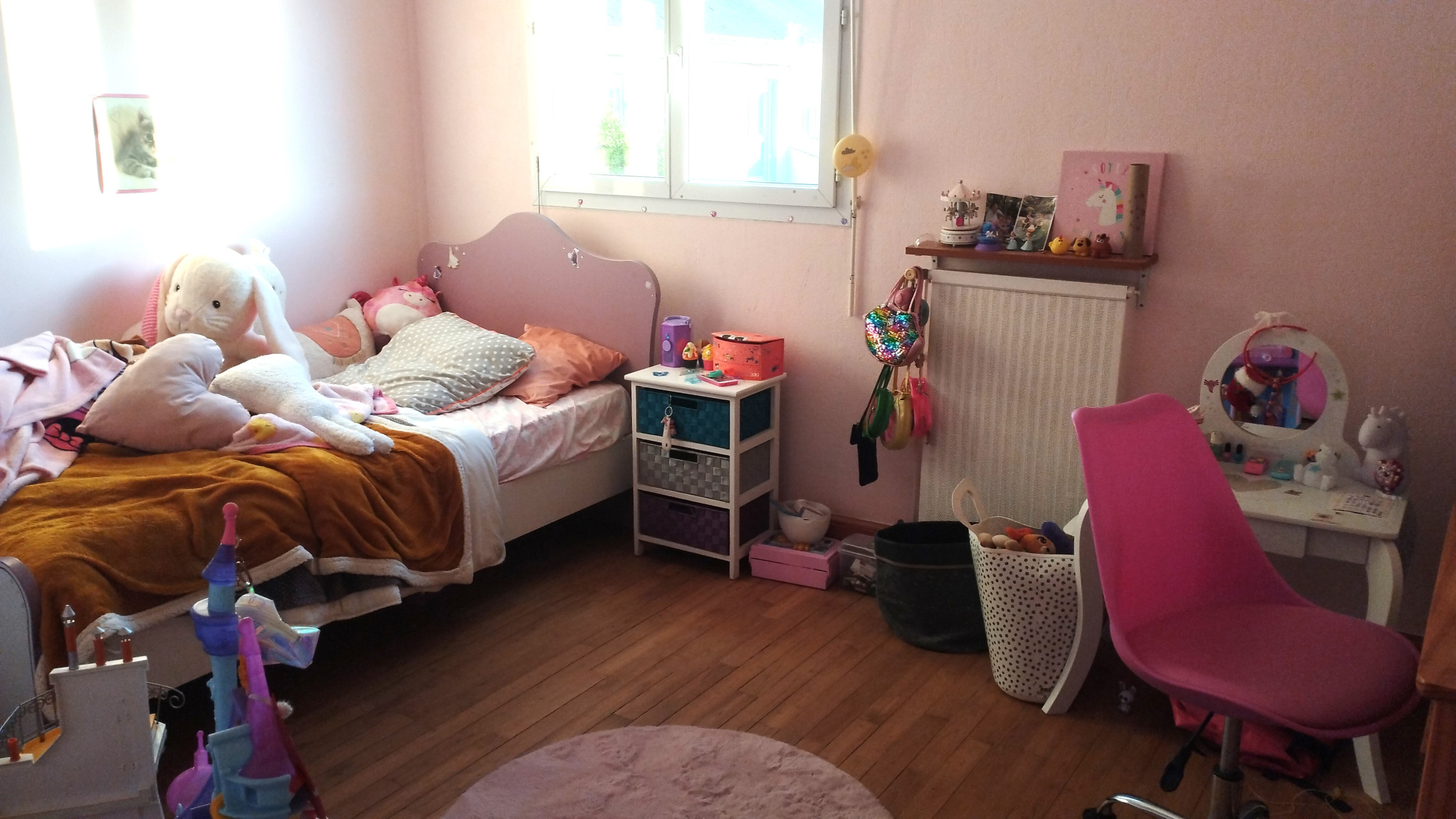 A l'étage: un palier desservant deux chambres, une salle de bains et un WC.