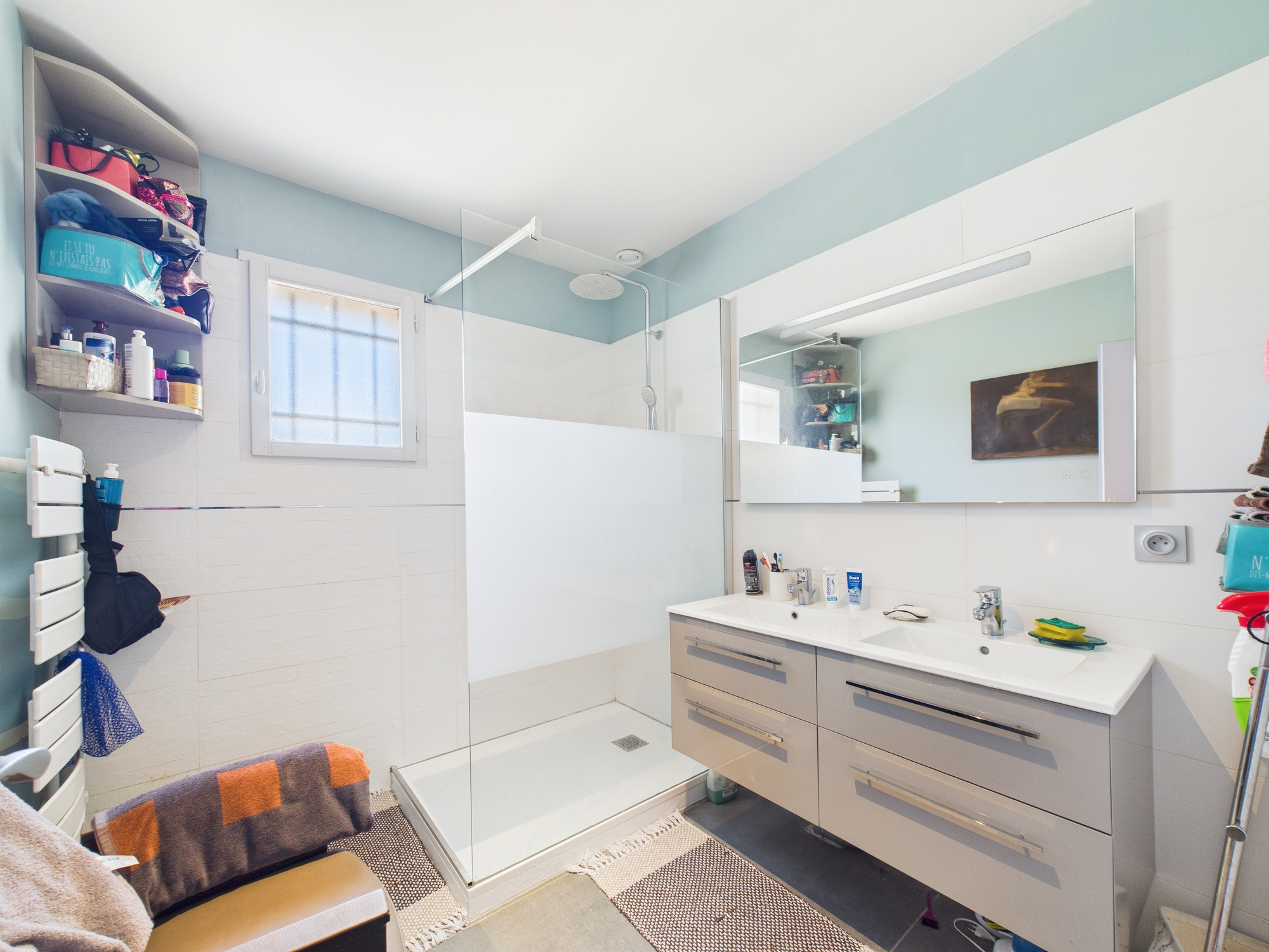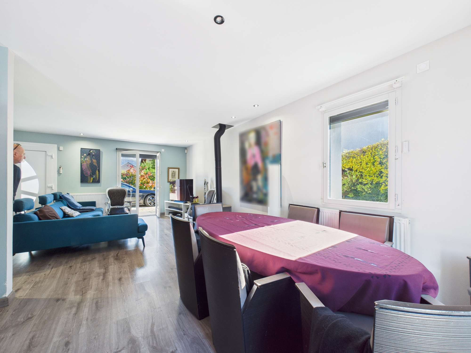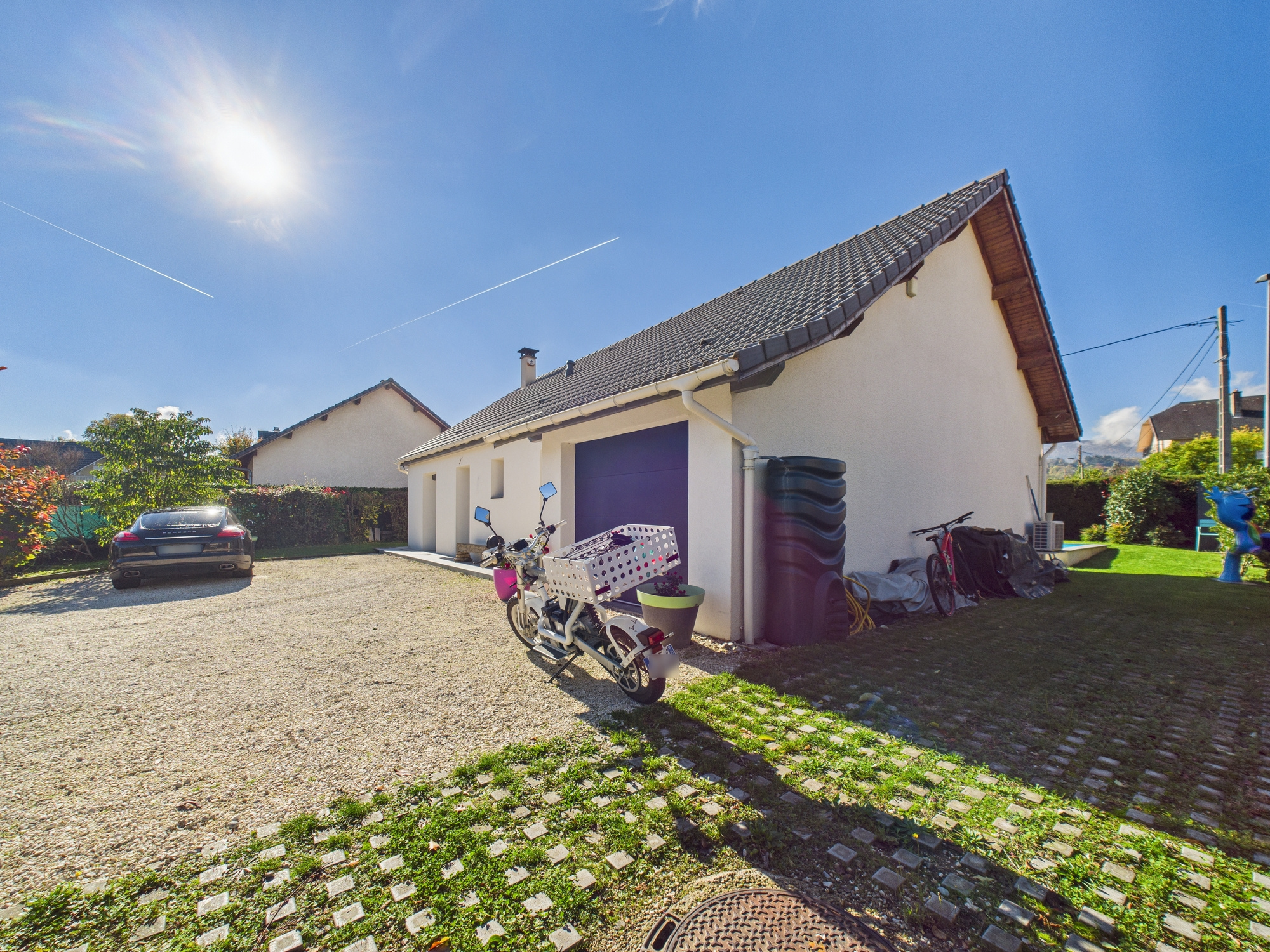 Dans un secteur résidentiel calme et recherché, découvrez cette agréable maison de plain-pied d'environ 82m2, construite en 2000, offrant de belles prestations et une luminosité exceptionelle grâce à son exposition idéale. Elle se compose d'une pièce de vie spacieuse et lumineuse ouverte sur la cuisine entièrement équipée, de 3 chambres, d'une salle d'eau aménagée et d'un garage. Le tout est implanté sur une parcelle plate de 600m2, entièrement clôturée et joliment arborée, idéale pour profiter des beaux jours en toutes intimité. A l'extérieur, vous apprécierez la terrasse en dalle sur plots de 50m2, une piscine enterré de 7.5 * 3.5m et une vue dégagée sur les montagnes sans vis-à-vis. Chauffage assuré par une pompe à chaleur air/eau. Le bien est en excellent état dans un cadre de vie paisible et rare sur le secteur ! A visiter sans tarder !