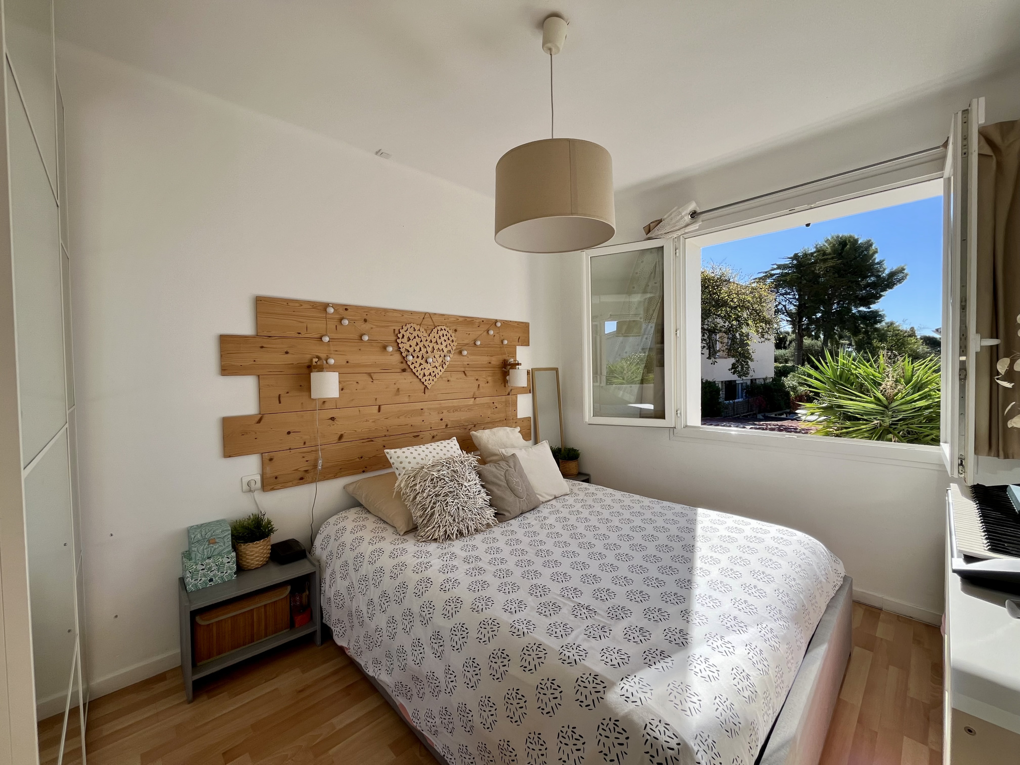 Jardin privatif d'environ 290m2 avec piscine, possibilité de stationner une voiture.