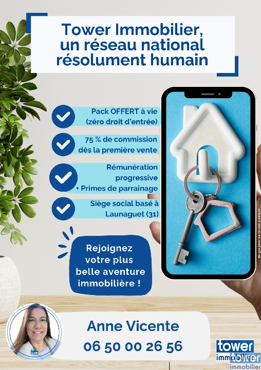 Pour ne pas rater cette opportunité et pour me joindre : veuillez laisser un message mentionnant votre identité au 06 50 00 26 56, anne.vicente@tower-immobilier.fr