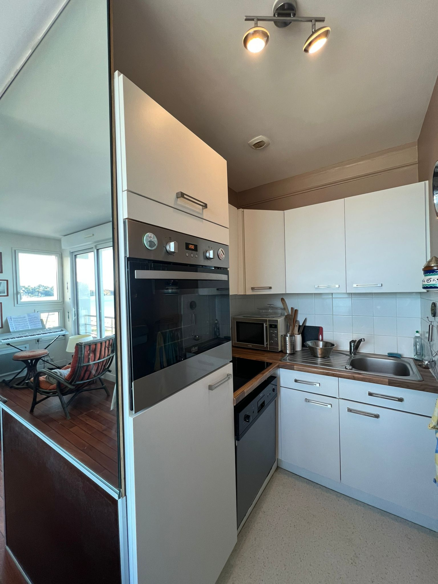 AIS SAINT CAST LE GUILDO - Idéalement situé au coeur de la station balnéaire, cet agréable appartement de type 2 se trouve au deuxième étage d'une résidence prisée, en front de mer, face à la grande plage, et à deux pas de tous les commerces. Dès l'entrée, un placard intégré apporte un espace de rangement pratique. Le séjour, particulièrement lumineux, s'ouvre sur une vue panoramique à couper le souffle, embrassant la mer, les Ebihens, le port et l'horizon. Cet espace de vie convivial est complété par une cuisine aménagée et équipée, idéale pour partager des moments gourmands face à la mer. L'appartement comprend également une chambre avec placard intégré, ainsi qu'une salle d'eau avec WC. En complément, vous bénéficierez d'une cave en sous-sol et d'un stationnement extérieur privatif, un atout rare dans le secteur. Un bien rare à la vente, parfait pour une résidence principale, secondaire ou un investissement locatif au bord de l'eau.
