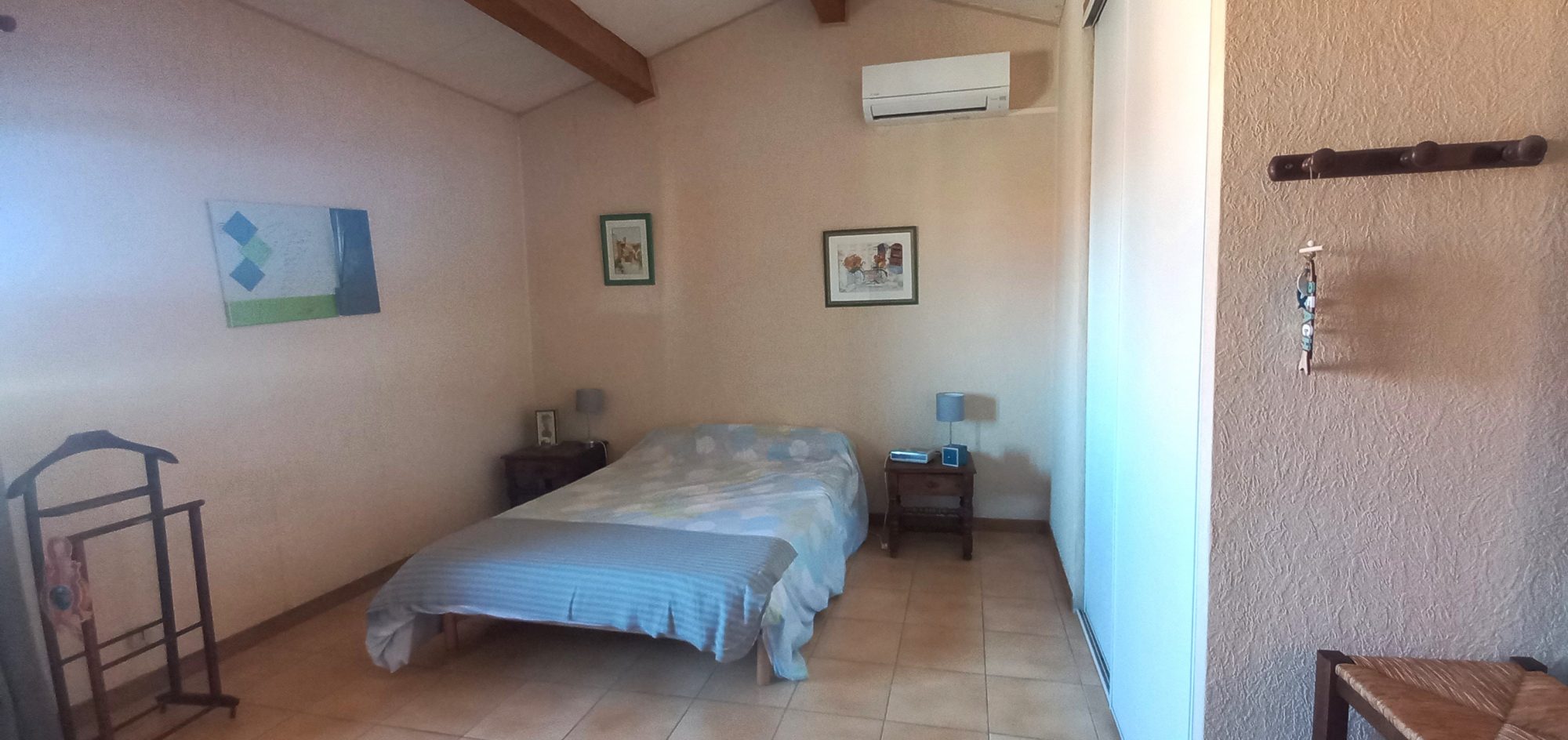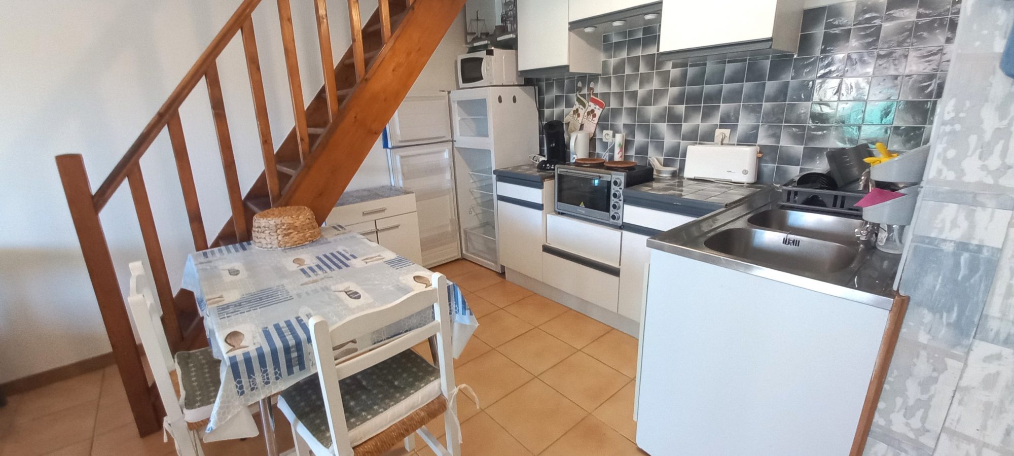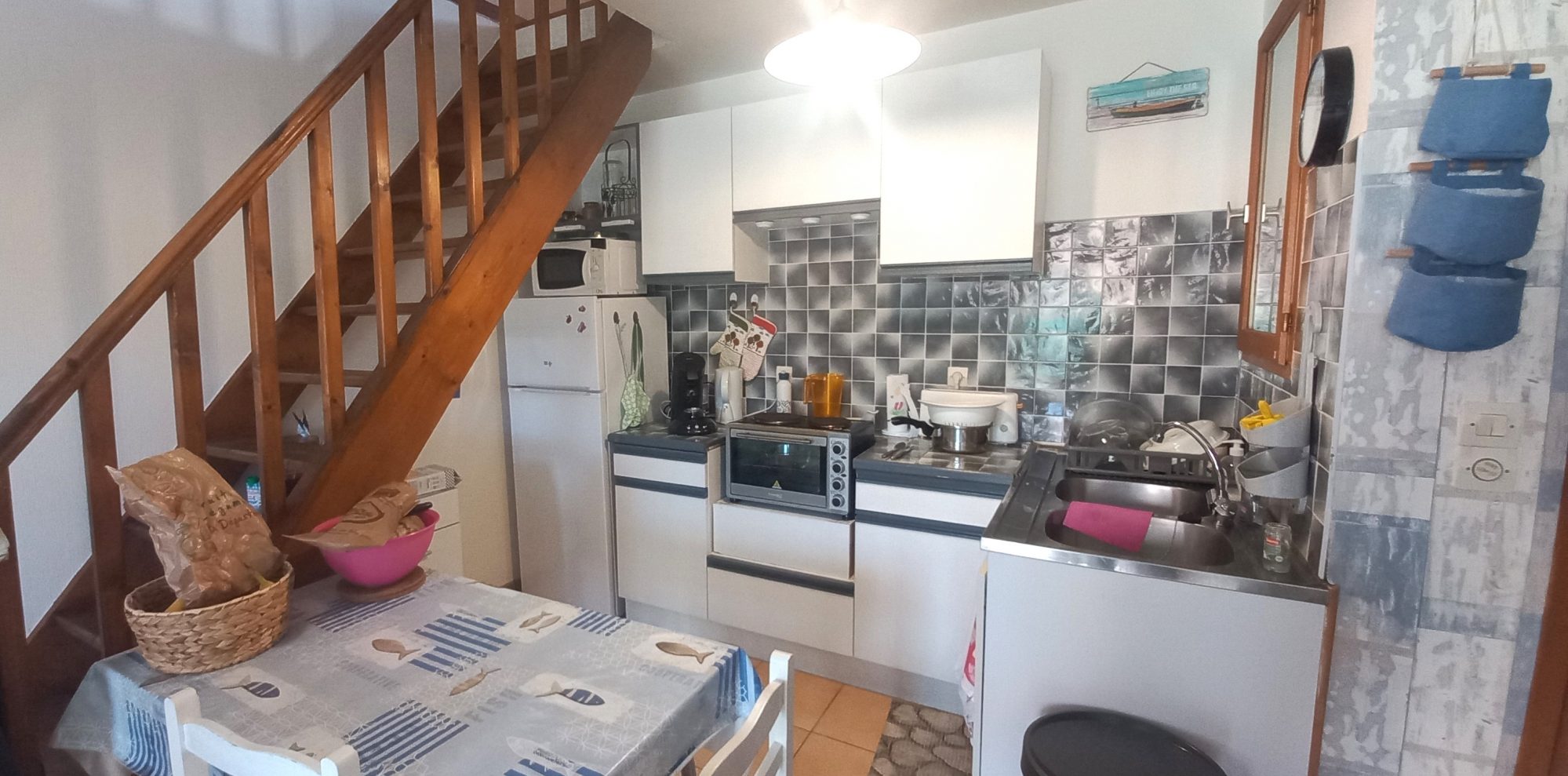 ARGELES SUR MER, Exclusif ! Dans quartier résidentiel proche centre village, appartement traversant dans une maison de 2 logements côte à côte, donc personne au-dessus ni en dessous, comprenant au RDC : séjour coin cuisine ouvrant sur grande terrasse de 16 m2, débarras indépendant. A l'étage une très grande chambre avec coin mezzanine, salle de bains avec W.C. Logement atyique car comme une petite maison, aucune charge de copropriété, idéal pour une résidence secondaire non loin de la mer, ou un placement locatif que ce soit à l'année ou saisonnier, mais aussi pour une résidence principale sans trop d'entretien et de frais, à découvir !
