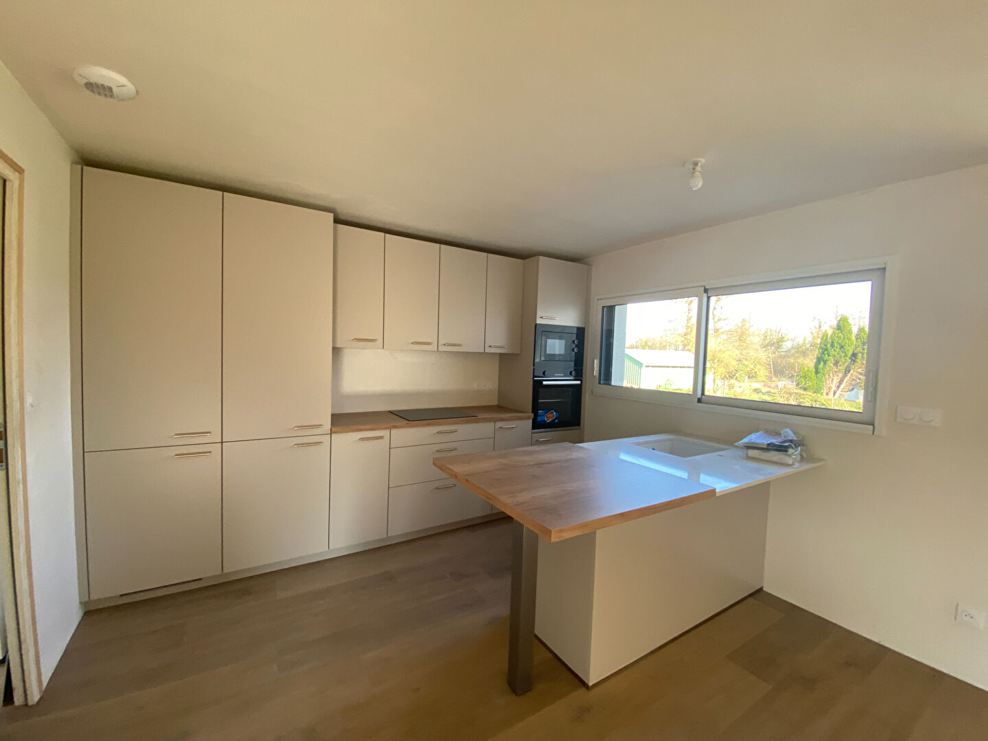 Cette maison neuve sur un terrain de 447m² hors lotissement dispose d'une pièce à vivre avec cuisine aménagée et équipée, une buanderie et un wc.