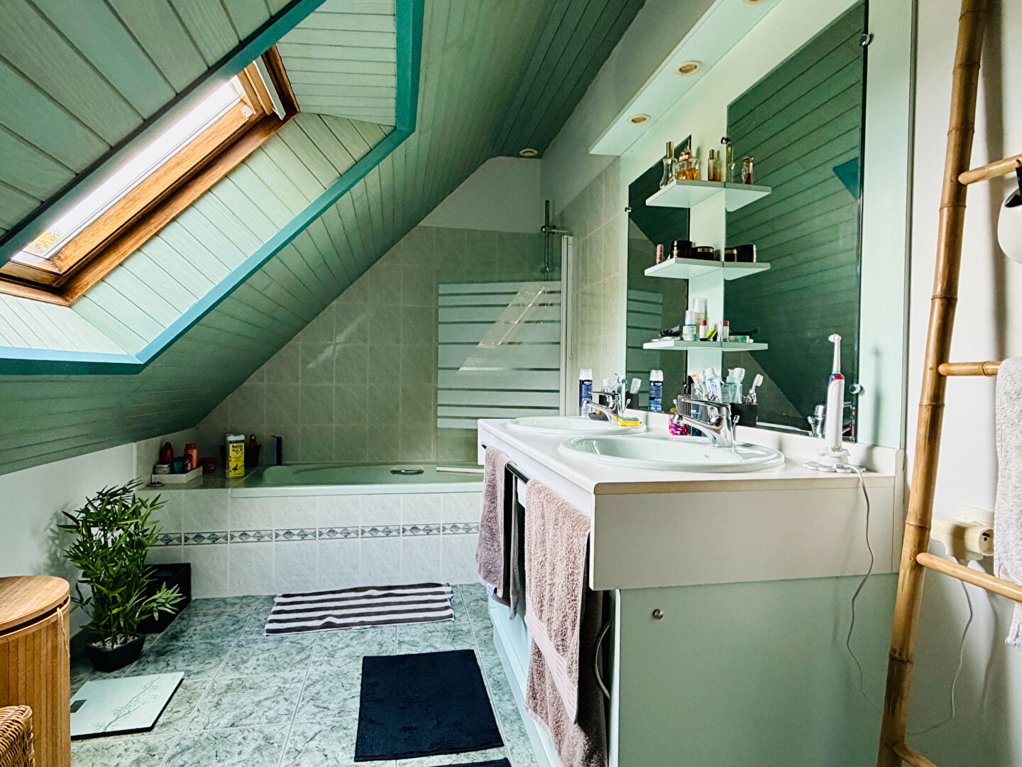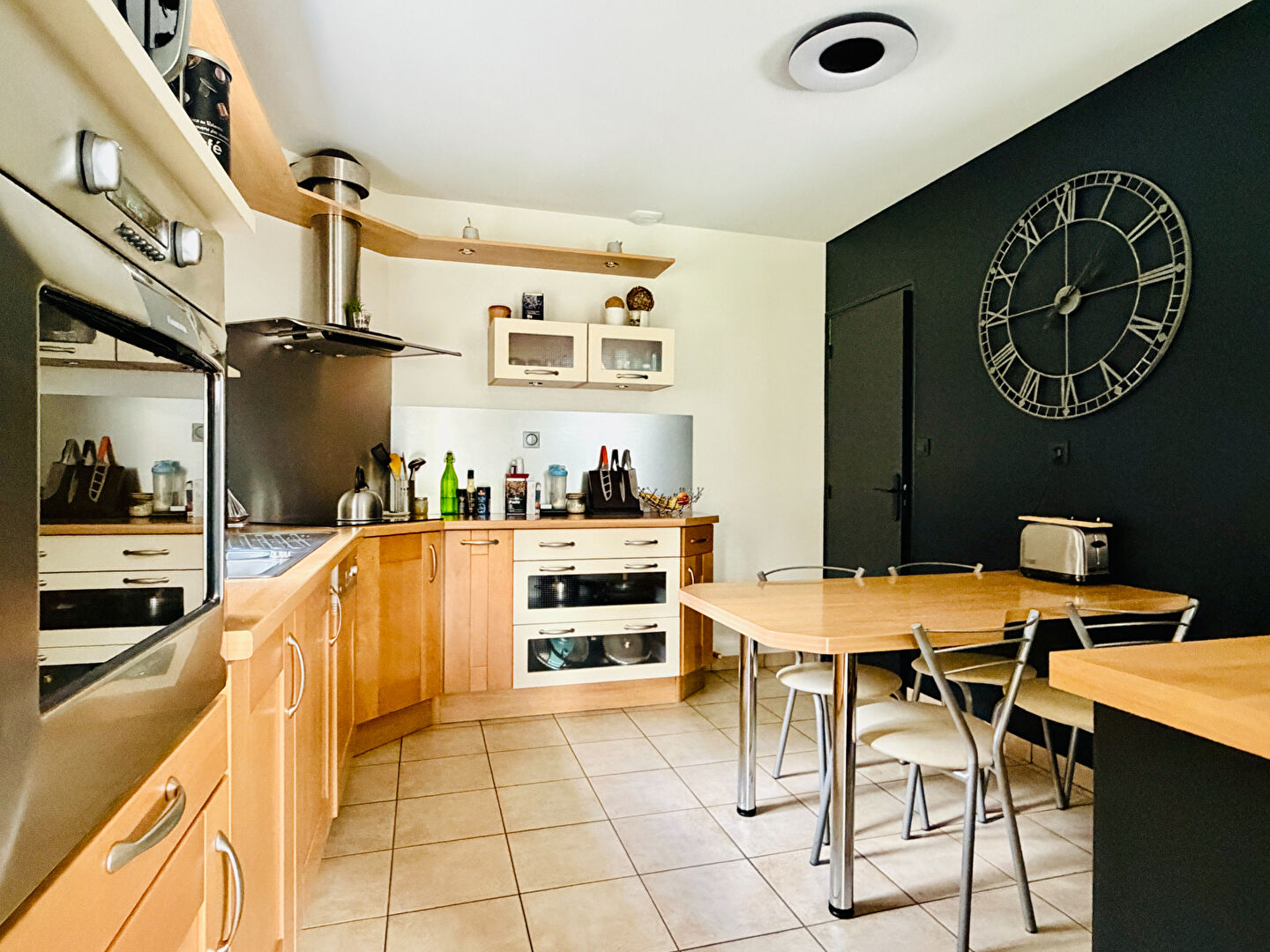 Parfaitement agencée, la maison propose une belle pièce de vie lumineuse orientée sud-ouest, une cuisine Schmidt aménagée et équipée, ainsi qu'une chambre au rez-de-chaussée avec salle d'eau privative, offrant un confort de vie au quotidien. À l'étage, 3 autres chambres avec placards accueillent toute la famille, accompagnées d'une salle de bains. Une salle de jeux au RDC est aménagée avec possibilité d'en faire une 5ème chambre.