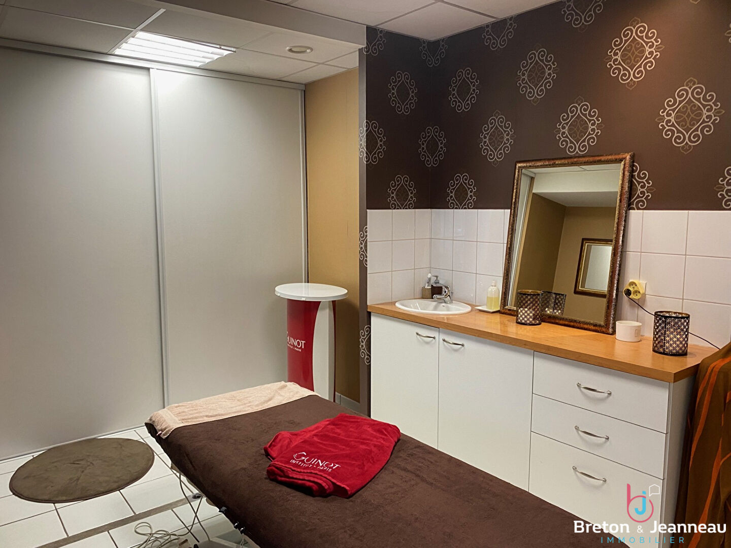 BRETON , JEANNEAU FOUGÈRES vous propose à FOUGERES (35), ces murs commerciaux à vendre dans un immeuble soumis au statut de la copropriété. Plein centre-ville, ils se composent au rez-de-chaussée d'une belle zone d'accueil, d'un coin cuisine avec évier, 3 pièces pouvant servir de bureaux ou salles de soins ou esthétique, coin douche et WC. En demi étage, un espace mezzanine pouvant servir de bureau. Le local est traversant (rue/cour arrière)et ne peut pas être divisé.
