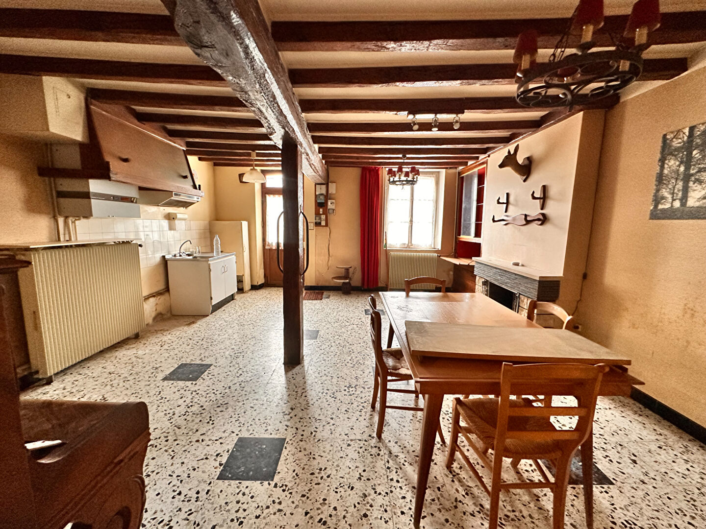 Cette maison à rénover pleine de charme et de possibilités offre au rez-de-chaussée une entrée donnant sur séjour et cuisine, un dégagement, des WC, une salle d'eau et une chambre. À l'étage, un palier dessert une seconde chambre. À l'extérieur se trouvent une cave, un puits, un garage ainsi qu'un abri de jardin. Une maison attenante vient compléter l'ensemble avec un séjour, une cuisine et une salle de bains avec WC. À l'étage, une pièce et un grenier offrent de belles perspectives d'aménagement. Le tout est édifié sur un terrain clos et arboré d'environ 1305 m². Ce bien vous attends, que ce soit pour une résidence principale, un projet locatif ou une maison familiale avec dépendances.